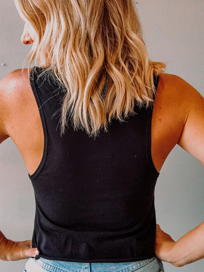 We all have a little BOUJEE in us. Cropped style muscle tank perfect for a casual day paired with denim shorts or worn for your next workout. Size up for looser fit.