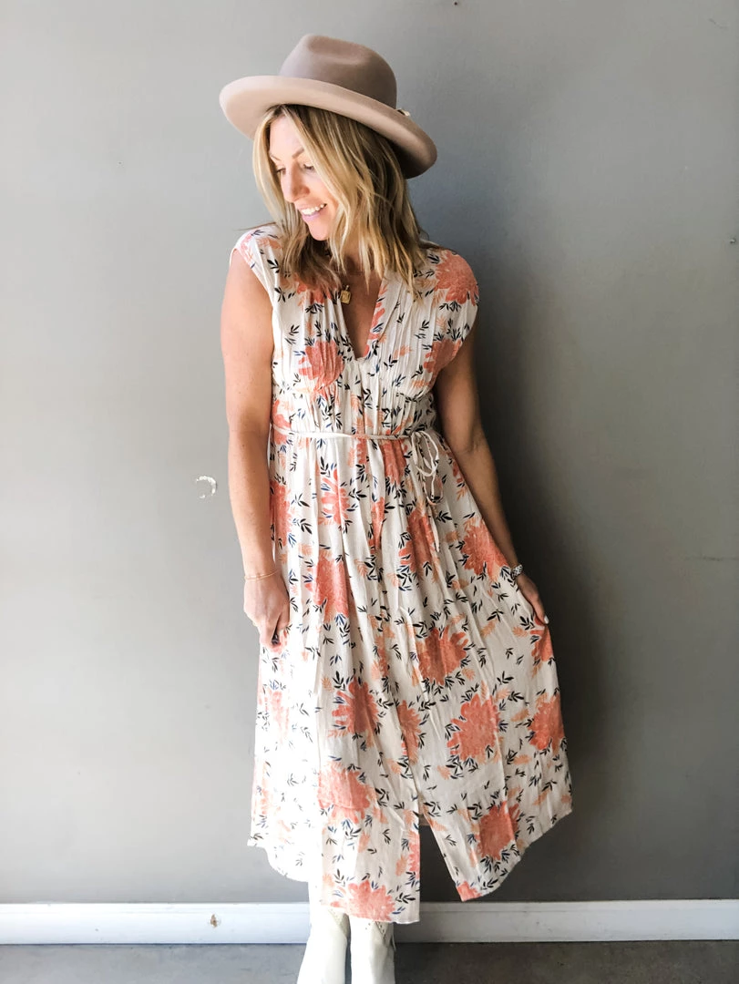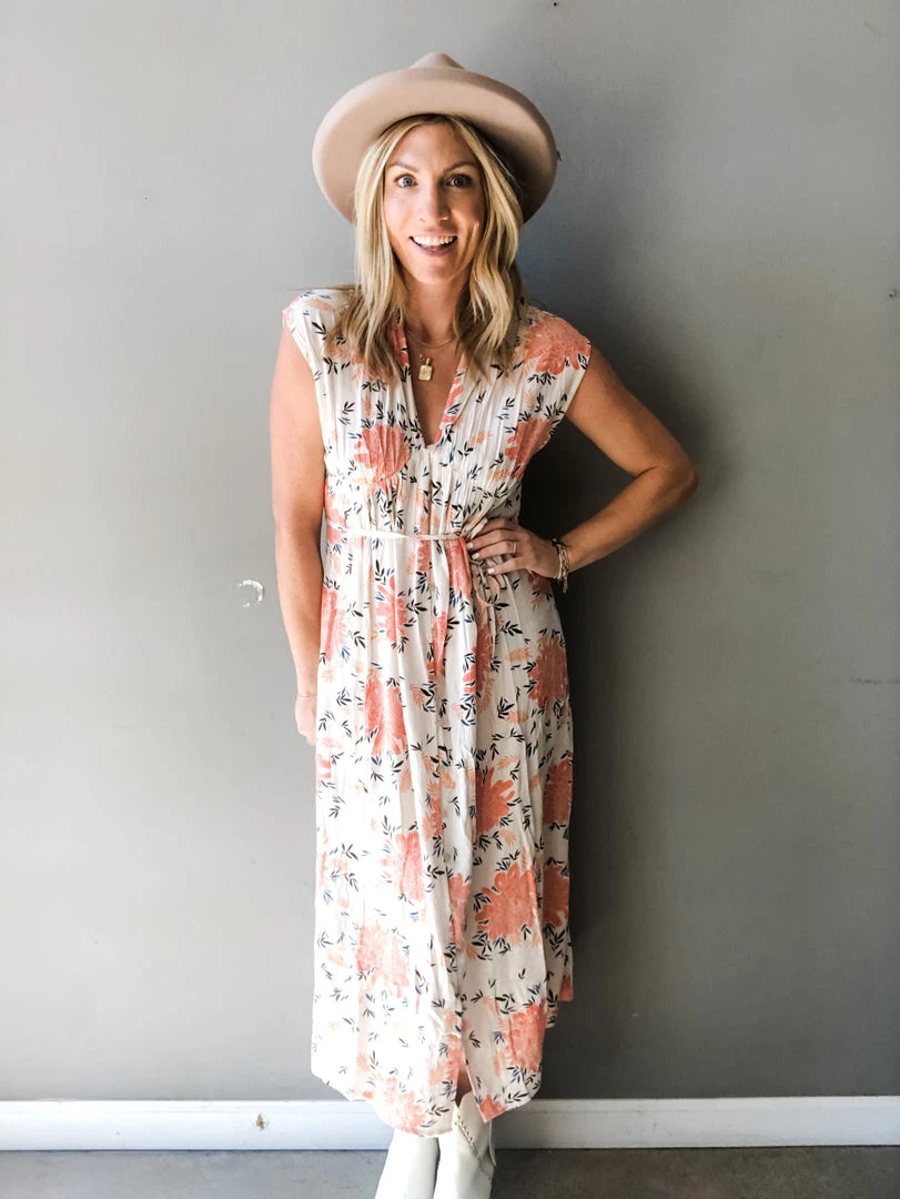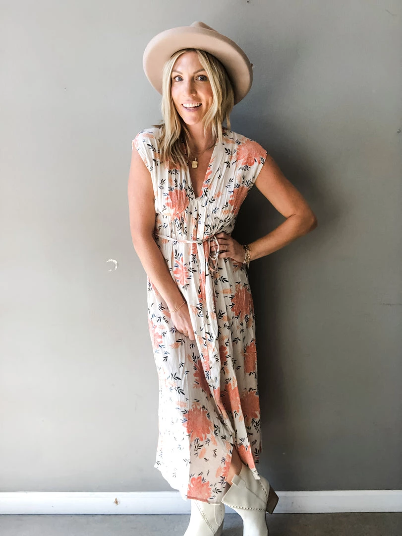 The Buckley dress is the prettiest floral dress we’ve ever seen! It is a printed midi dress with a button loop detail down the front and features a waist tie. Versatile and perfect for year round wear, the Buckley dress can be paired with any shoe and layered under a denim jacket as fall approaches.