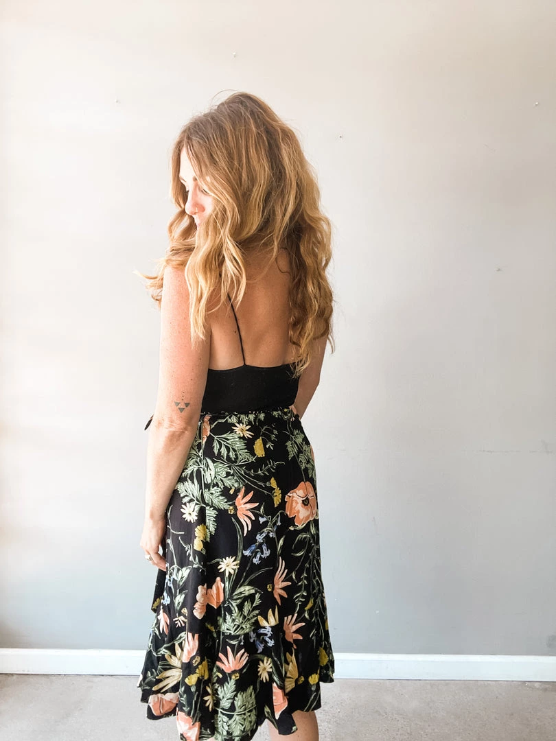 In a chic wrap design with flounce detail, the Holly Woven Midi Skirt is ready to hit the town. With endless stlying options this floral skirt is simply a must have.