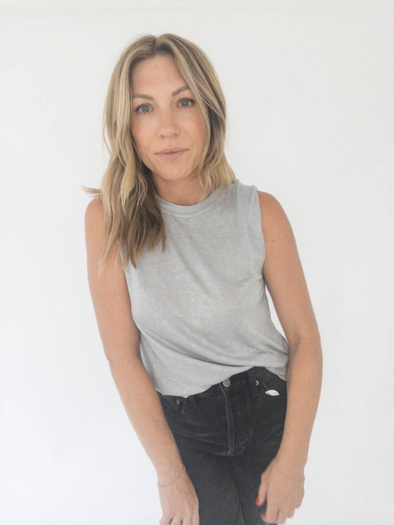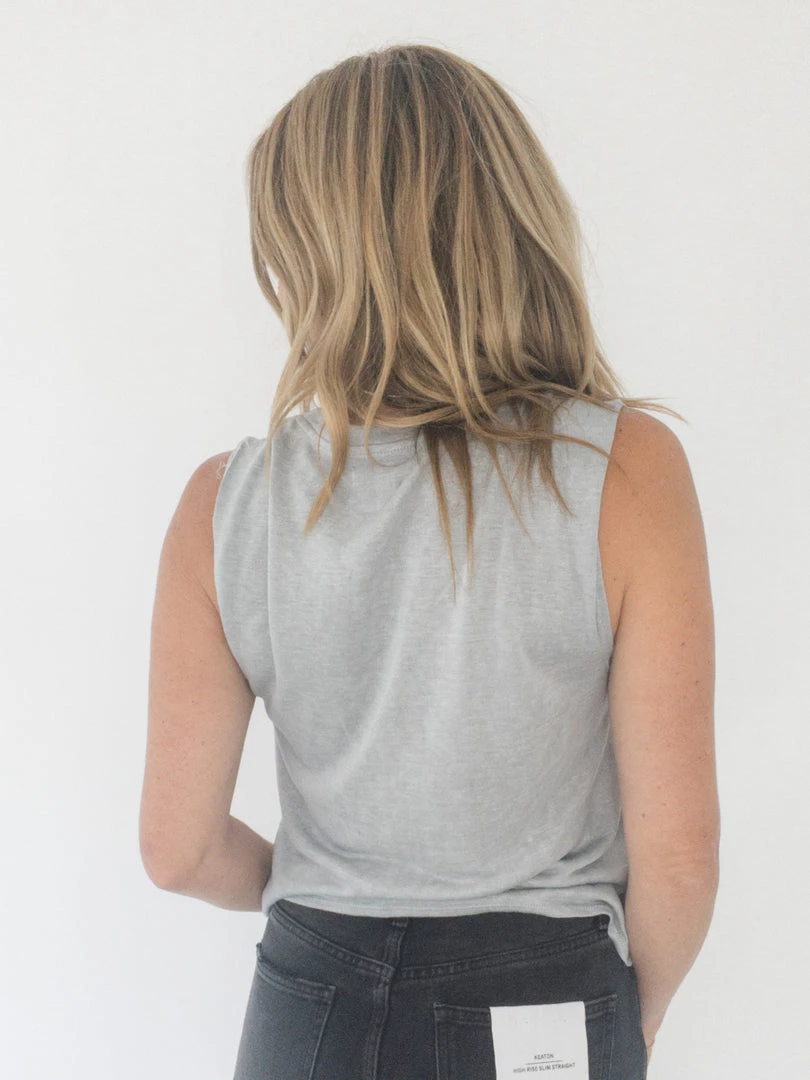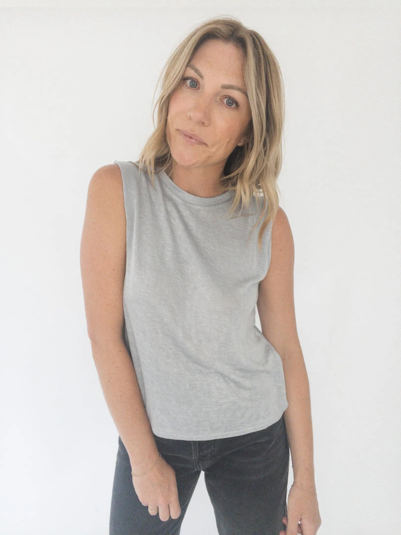 Elsa is a slub knit crew neck sleeveless top with a fold back tuck detail at the shoulders. An everyday type of piece that is lightweight and versatile. Get ready for plenty of wear in this easy tank.