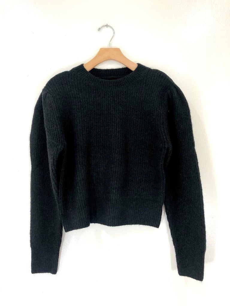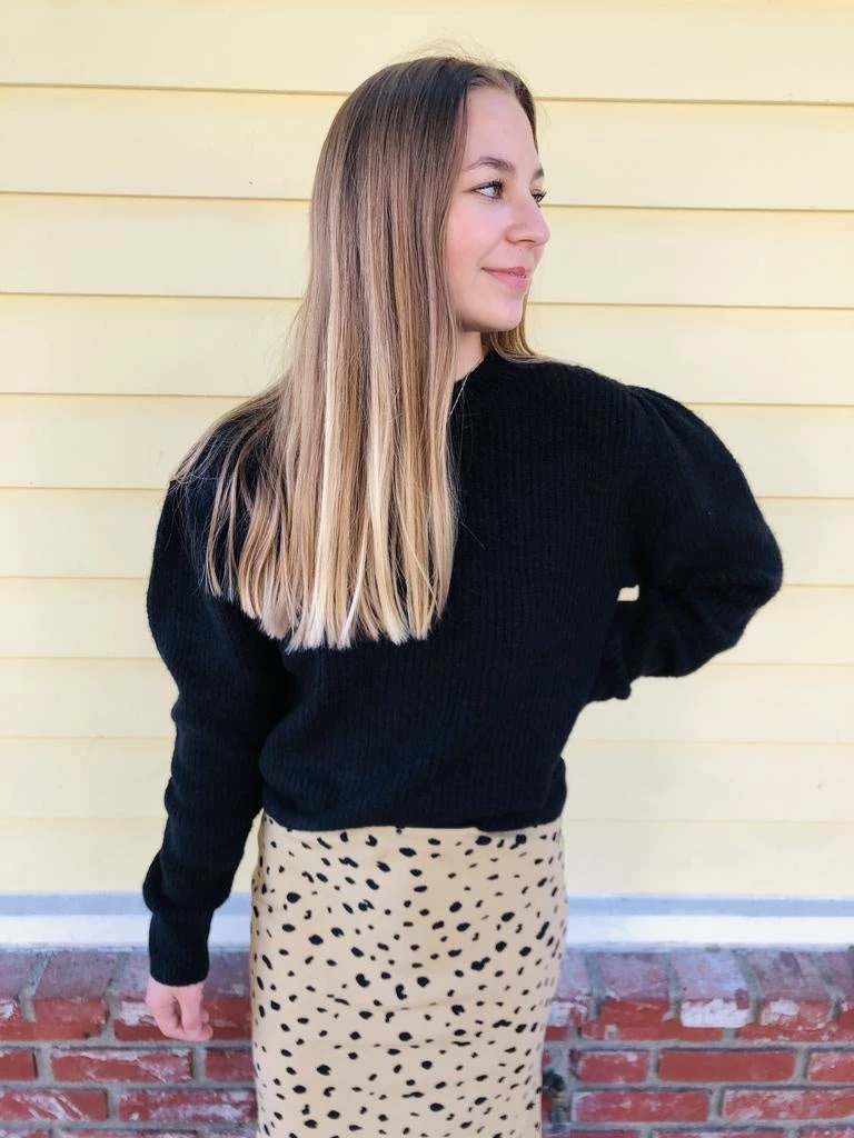 The Florence Sweater is ultra-soft and keeps you cozy and chic through chill days. A slightly cropped fit, thus pullover features puff sleeves and a crew cut high neckline. So easy to dress up or down. Runs big. Model wearing XS.