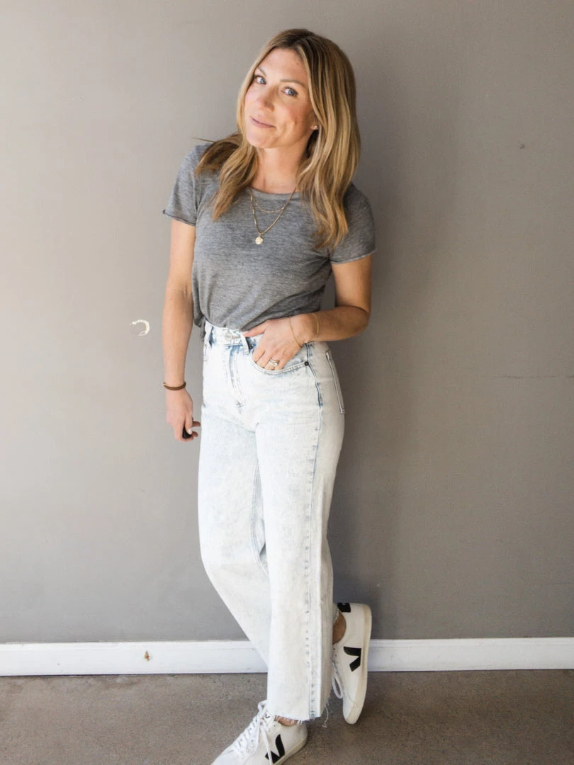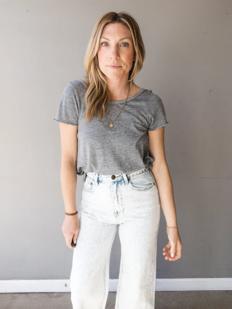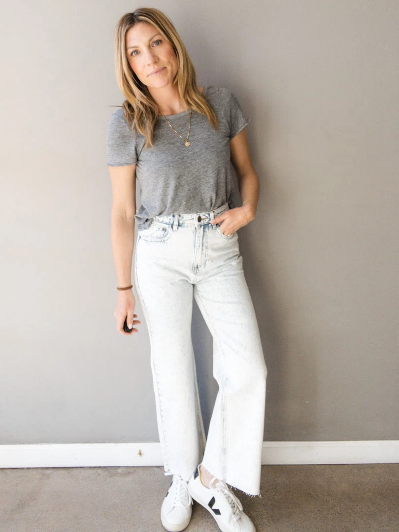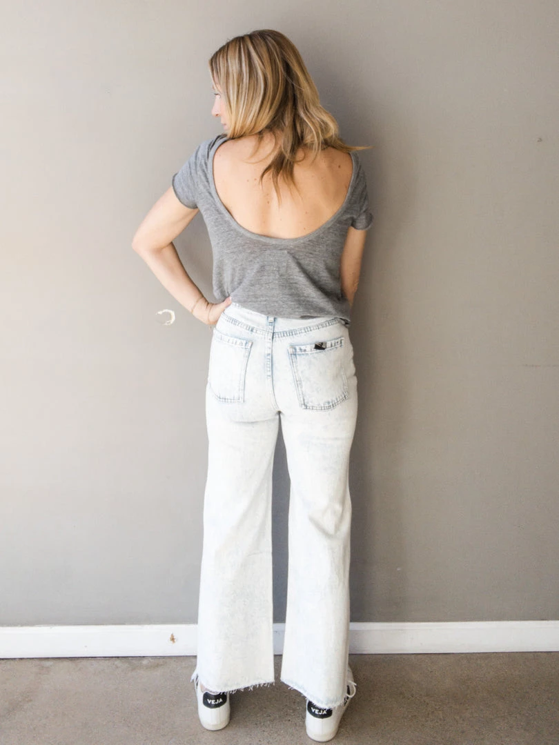 The Gabi Pant is a pair of jeans with personality! A high waisted flare cropped leg jean with a raw cut hem. Available in a super light wash, these jeans are a great fit and fun add to literally every outfit. Wear casual with a tee and sneakers or pair with a heel for a night out.