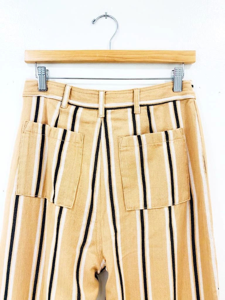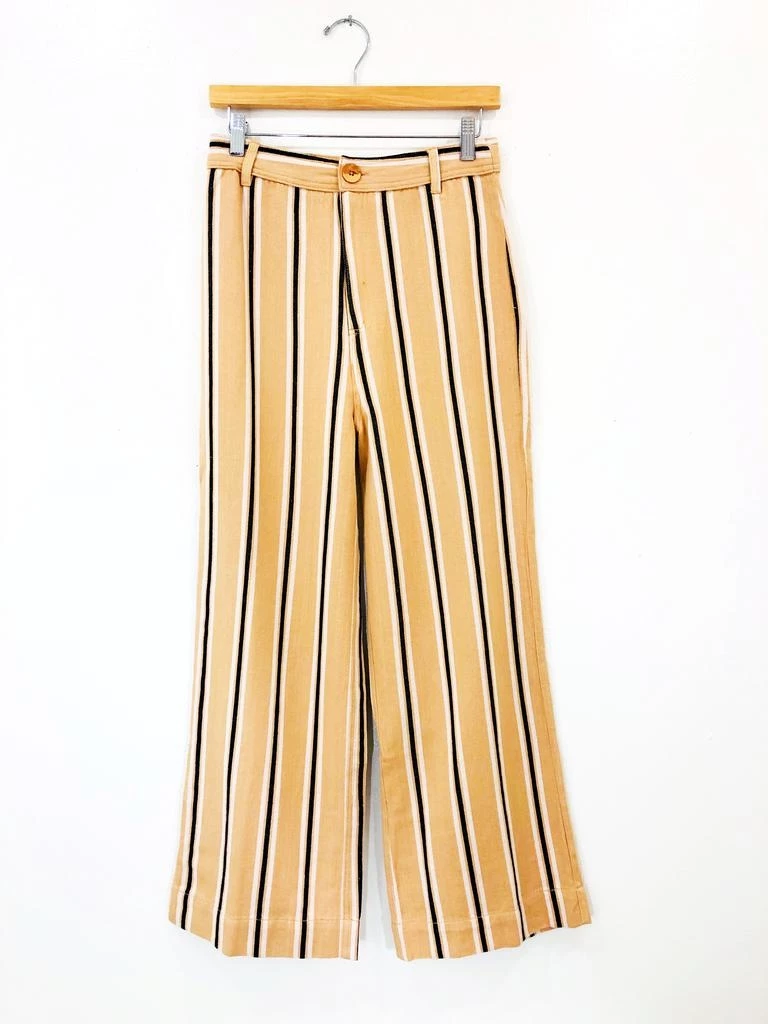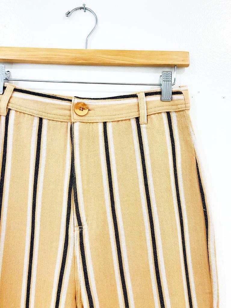 A structured cropped flare with pinstripes and a high waist. Pairs well with your fav graphic tee and some mules for a transition to fall look we could live in.