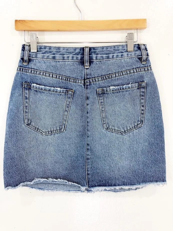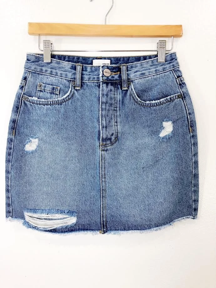 A classic denim skirt is a must have in any wardrobe. Add this slightly disressed one to yours and pair it with any graphic tee or crop top.