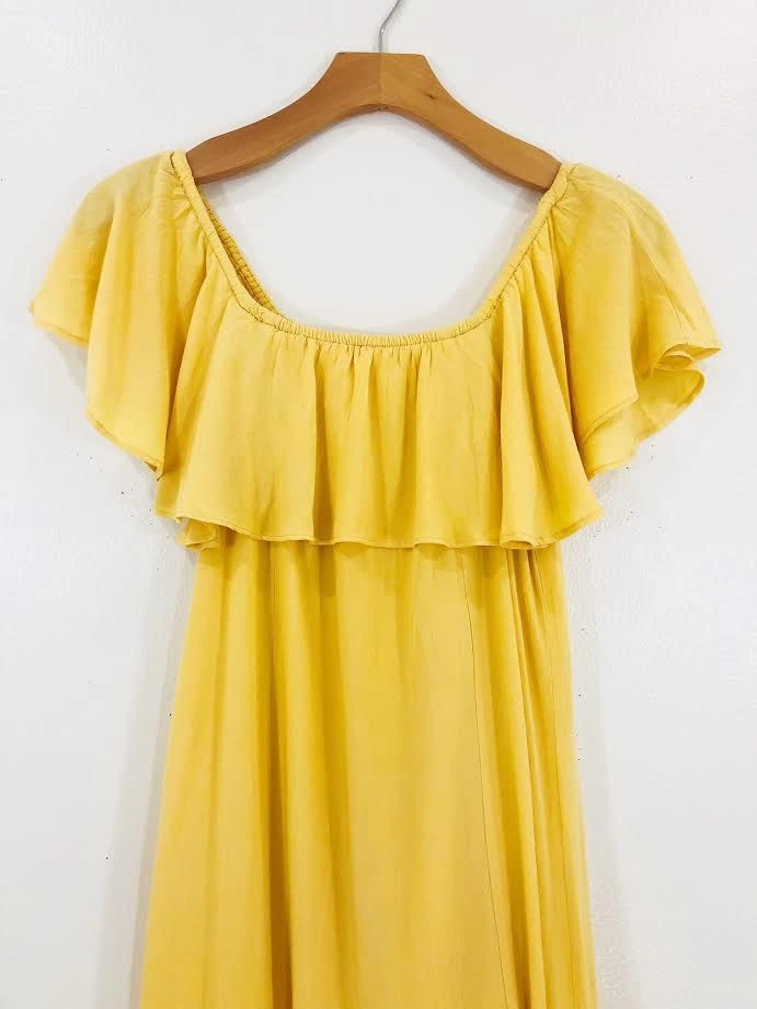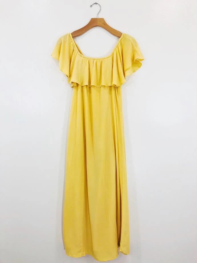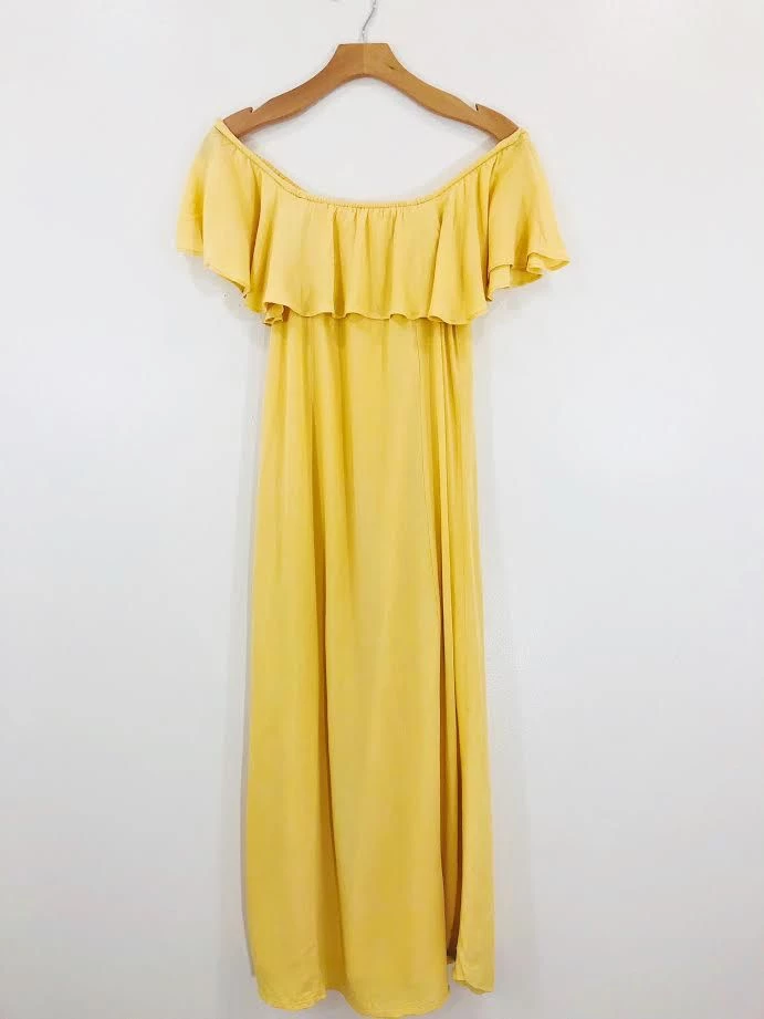Youâll be walking on sunshine in the new Vista Del Valle Dress! We love the off the shoulder ruffle details of this pretty number! Double lined and ankle-skimming length.