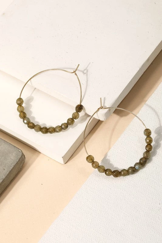 An everyday pair of hoop earrings featuring glass beaded circle design.