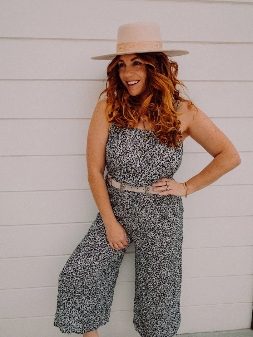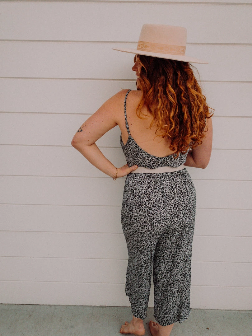 The Day Dream Jumper is a Salt and Freckles best-selling silhouette, in a new classic black and white floral color way!! We love the low cut back of this fun and easy piece, with a loose fitting wide leg and cropped hem. Perfect with boots or wedges, or your fav easy sandals for beachside hangs.