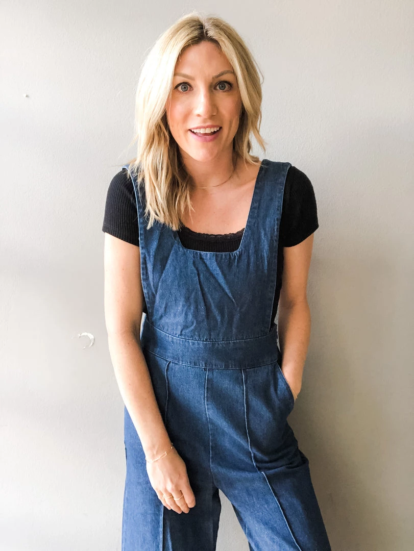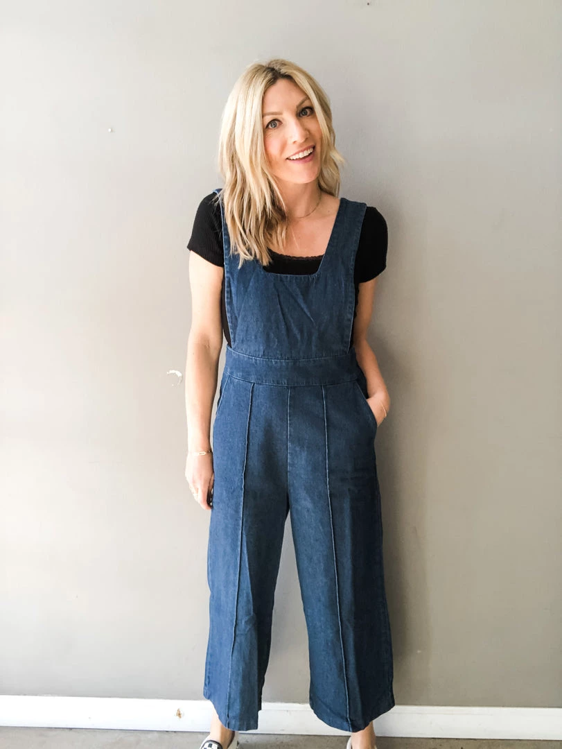 A cropped flare leg overall with wide shoulder straps, pockets and side zipper. We love it layered with our Baby Baby Rib Crop and a pair of sneakers for an easy casual look. Super comfortable and a fun versatile piece that can be worn year round.