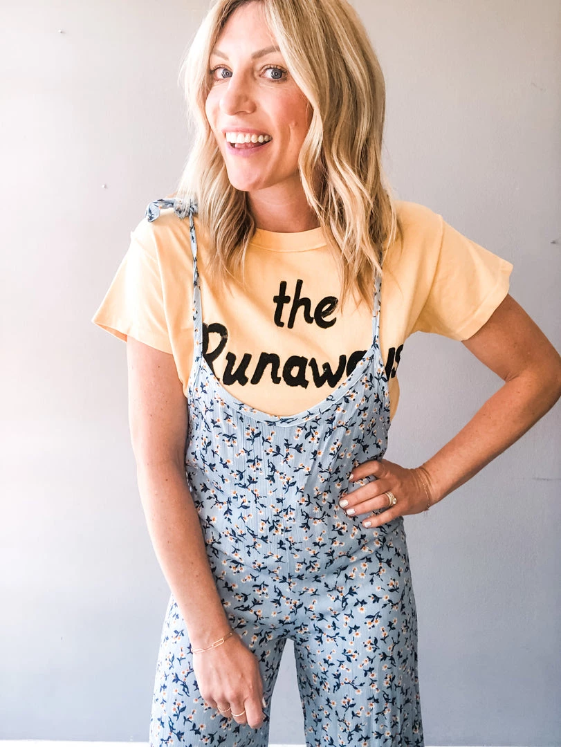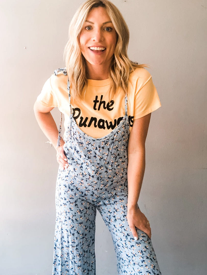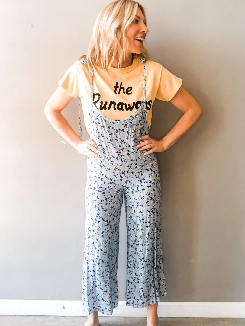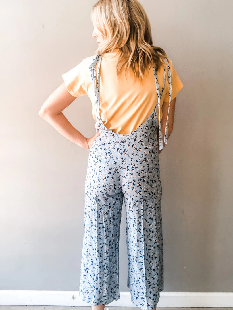 A jumpsuit meets overalls and we couldn’t love it more! This cropped leg jumpsuit has long overall style adjustable tie straps that can pair over anything from a basic tank, a graphic tee or your swimsuit! A fun pop of color with an all over floral, a great option for spring and summer.
