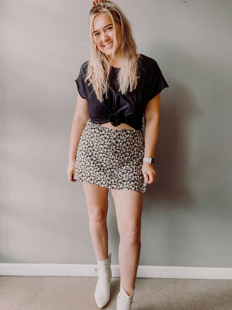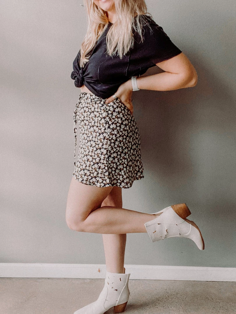 The Flower Flare Skirt takes us back to everything we loved about the 90’s!!! Super sweet floral skirt with a tie waistline and looser, slightly flared fit. Perfect with a bodysuit and your go-to Doc Martens or with strappy sandals and a tee…or sneaks and a band tee!!! Perfect easy piece to add to your spring and summer lineup!