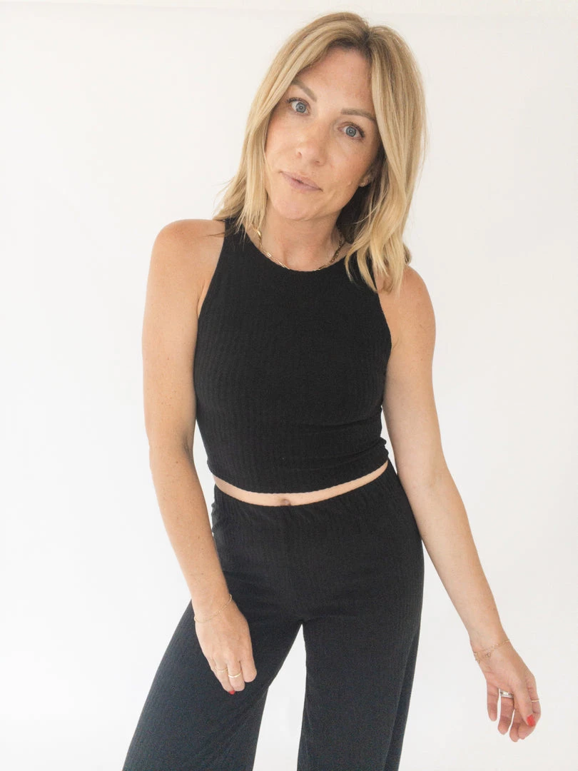 We love a simple ribbed tank that fits like a glove, and this one is just that! It features a high neckline and wide arm holes. It’s soft, stretchy, and looks amazing paired with it’s matching palazzo pant or with bottoms of your choosing. It’s easily worn in the heat of the summer or as the weather cools down, so expect to throw it on all year round.