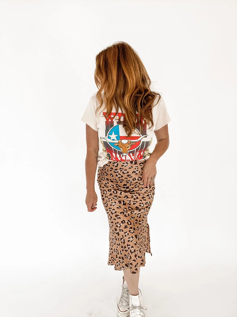 A crowd favorite is back in the shop!! This bestseller is a pull on silky, slip midi skirt with an elastic waist and double side slits. A closet staple due to its versatility. Pair with sneakers and a tee or a tank and booties. An all around favorite silhouette we love to play with.
