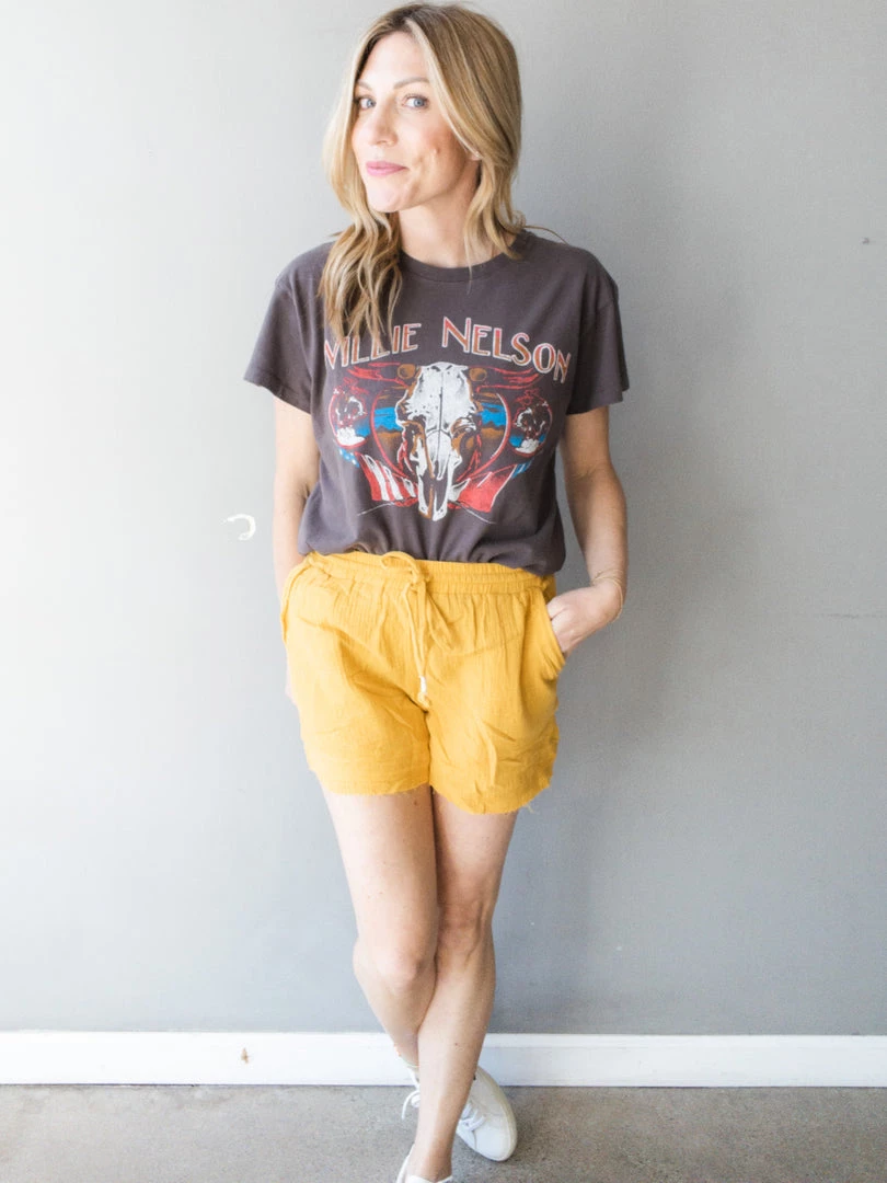 A linen drawstring short with an elastic waist that is perfect for everyday wear. Light and loose, these shorts can be paired with a tank or a tee and sneakers or sandals, versatile for whatever life throws your way.
