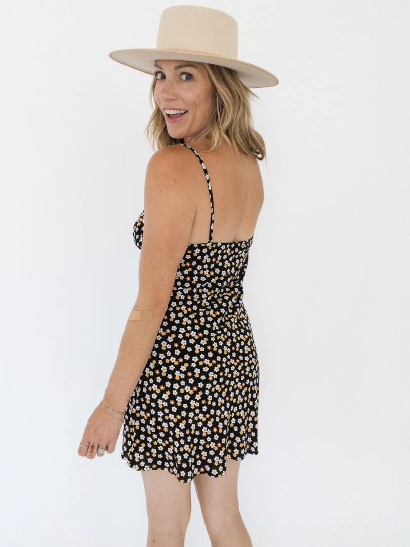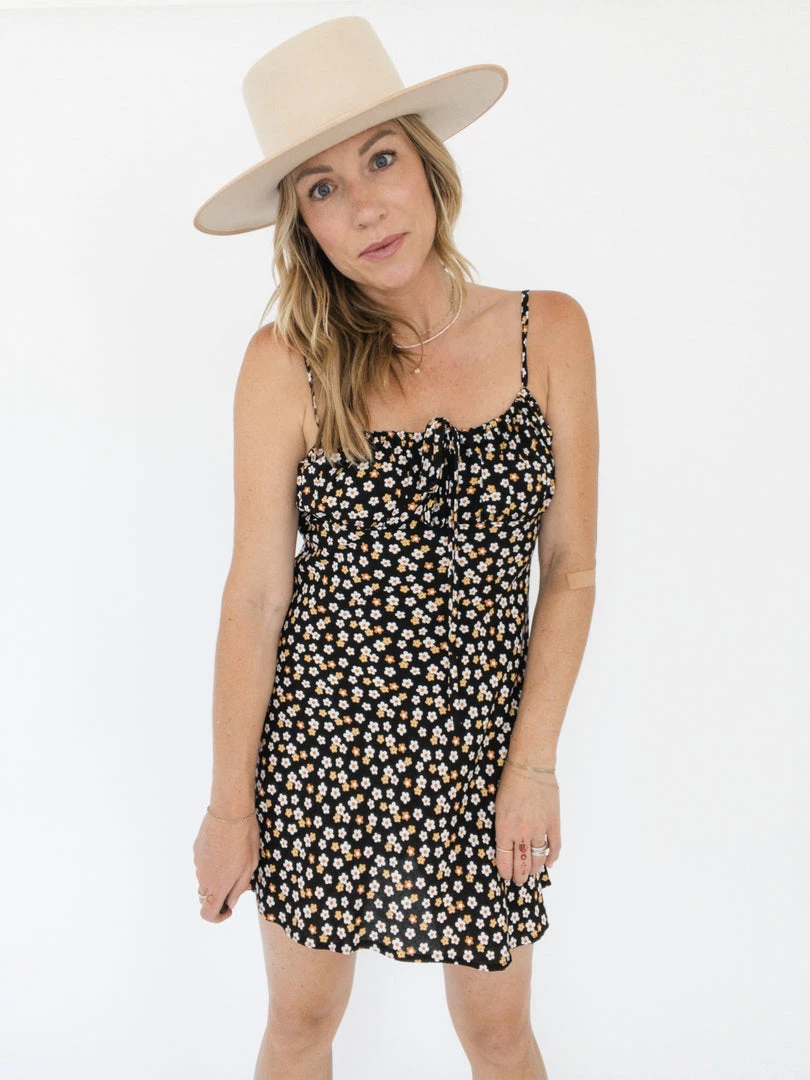 This sweet mini dress is flirty and simple in all the best ways. It’s lightweight, flowy, and has adjustable shoulder straps and bust via the tie at the front. A summer staple!