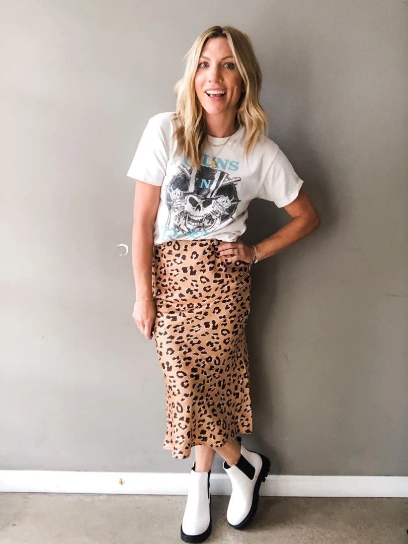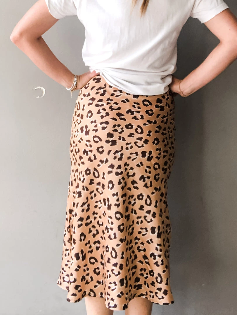 A pull on silky, slip midi skirt with an elastic waist and double side slits. A closet staple due to its versatility. Pair with sneakers and a tee or a tank and booties. An all around favorite silhouette we love to play with. Pictured with the Pilot Bootie.