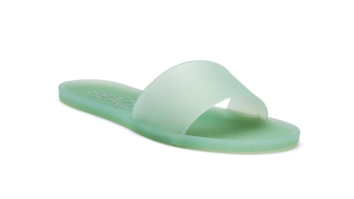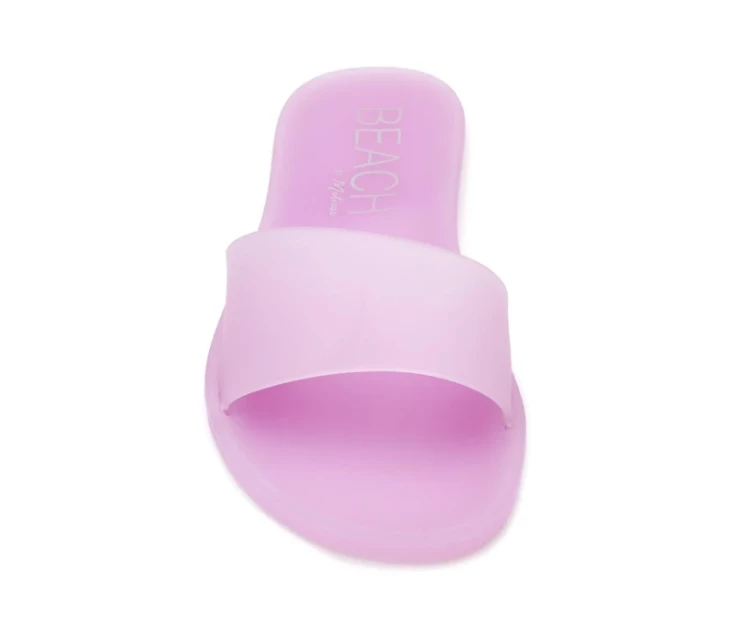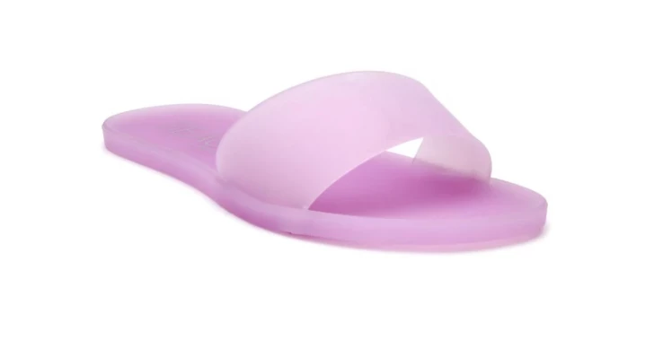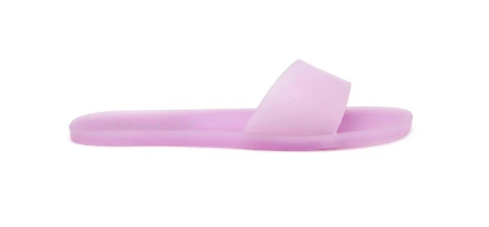 The Sol jelly slide sandal has a lightweight design with its sleek shape and single asymmetrical top band. A synthetic upper with manmade outside and synthetic lining.