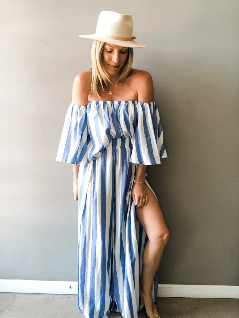 The Hannah Striped Pant has an elastic waist band with a high rise fit and side slits that show off a little leg with movement. These long pants are so fun for summer and can be paired with any top or worn as a matching set with the Hannah Striped Top (sold seperately).