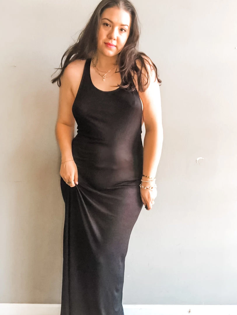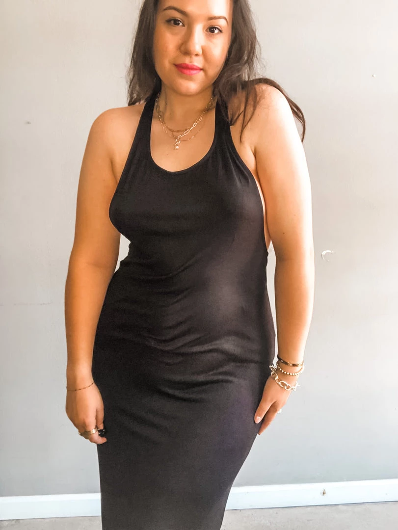 Holy chic dress of our dreams!!!! This stunning everyday dress features the prettiest silhouette when you really want to make a splash!!!! A low cut back with scoop neck front gives their great basic a serious case of wow factor. Also a great piece to throw on over a bikini poolside or on vacay!