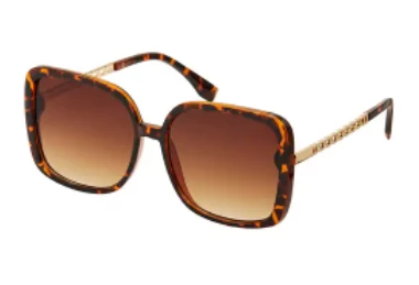 The Finch Sunglasses are a classic pair of oversized sunnies with a modern flair. These sunnies combine the best of a cat eye with a fun square shape and feature a braided chain temple and solid temple tip.