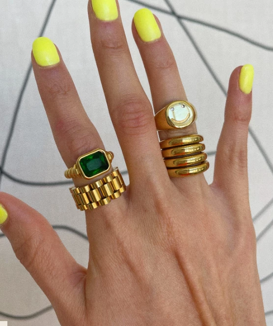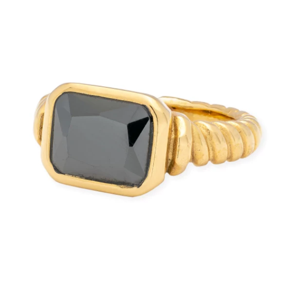 Square colored stone with twist accent band detailing. Comes in a beautiful Onyx or Emerald stone.