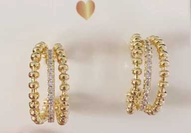 The Small Joy Hoop is a triple hoop earring with a single post closure. Two beaded hoops surround a diamond studded hoop that adds just the right touch of glam.