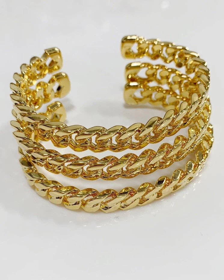 A beautiful adjustable link cuff perfect for adding to your stack. 1/5” thick and 14k gold plated.
