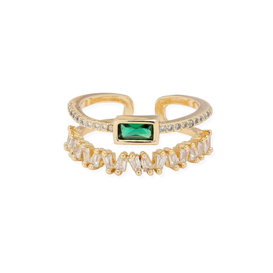 A timeless and classy double band ring with baguette cut accent stones. It’s easy to mix in with your existing stack or wear all on it’s own.