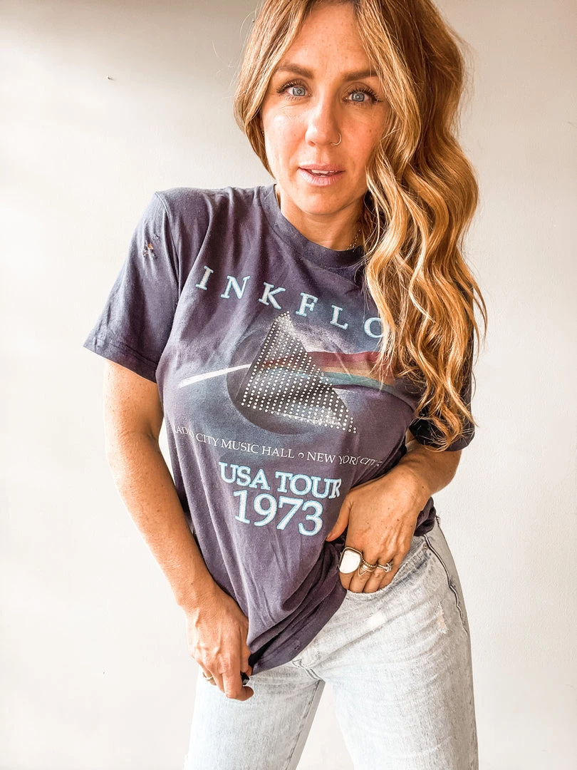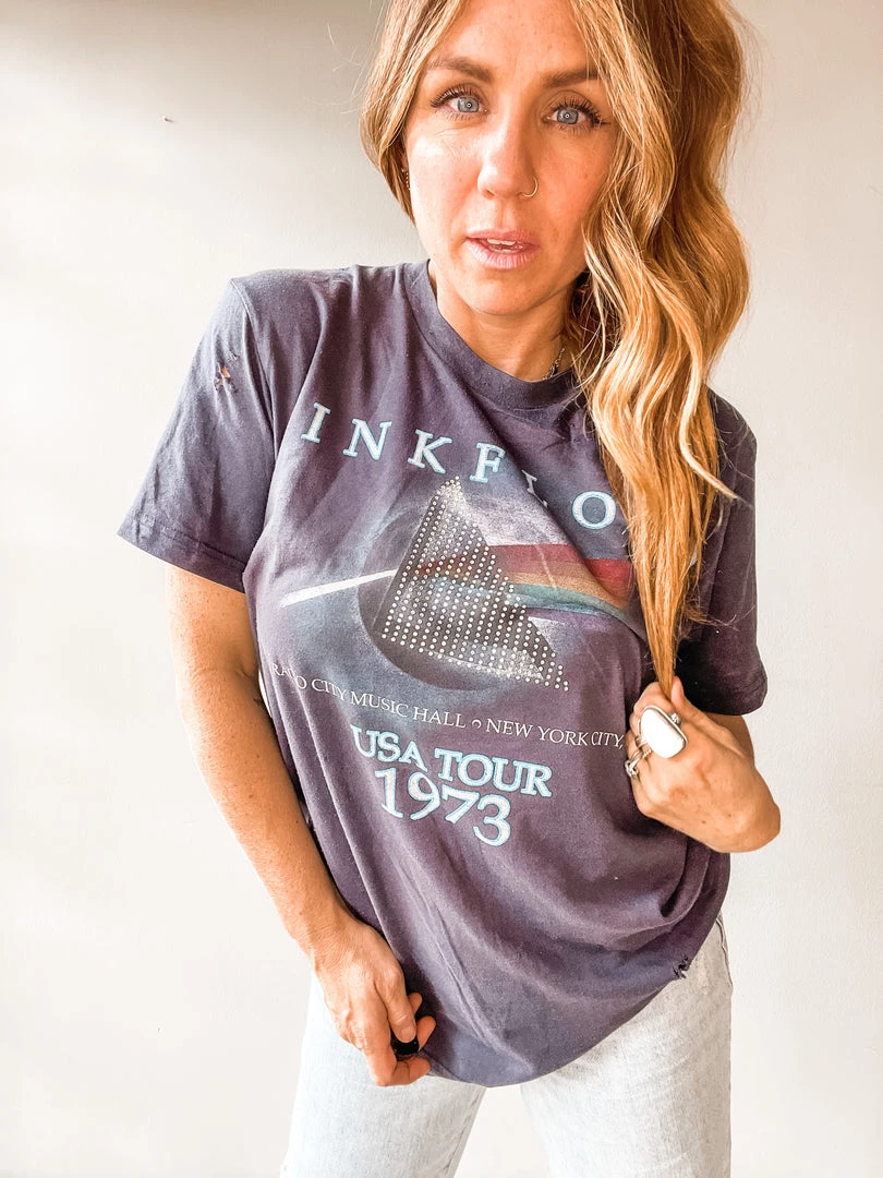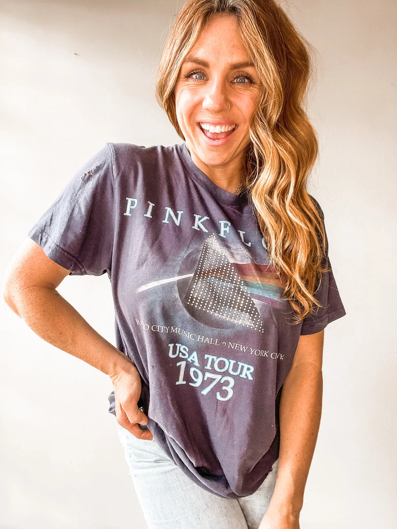 Love the custom embellishments on this classic Pink Floyd Vintage Tee. An oversized, buttery soft fit and feel, makes this the perfect one of a kind band tee to add to your closet.