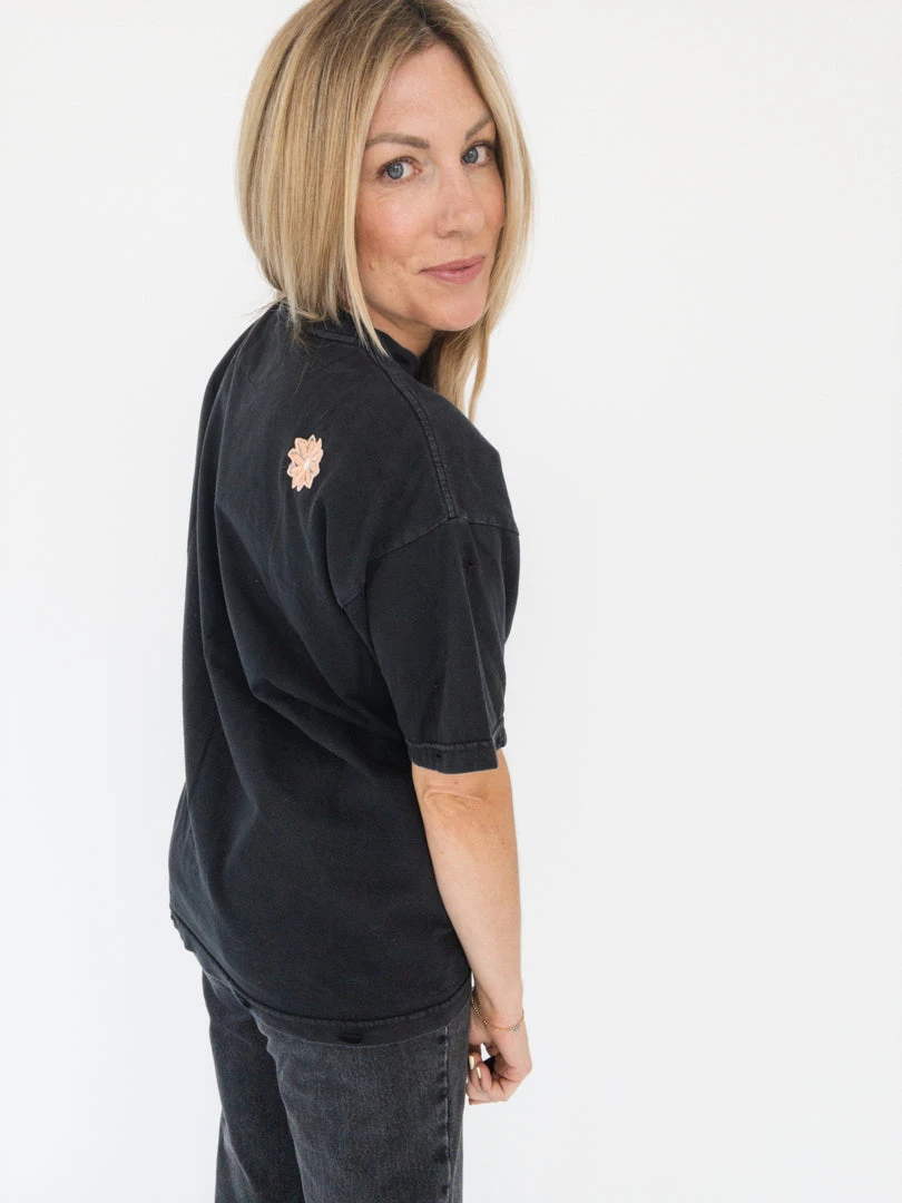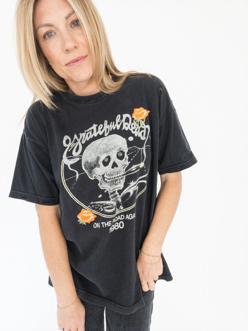 Calling all Dead Heads…or at least vintage tee lovers!!! This new one of a kind Grateful Dead graphic tee has fun rose patch details you will love.