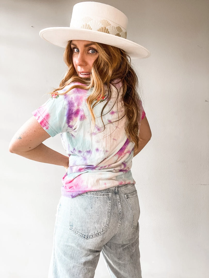 The Led Zeppelin Vintage Custom Tie Dye Tee is a rad classic Led Zeppelin Vintage Band Tee that fits like a dream. Fun pop of color for summer and festival looks!!! Complete with cool flower patches on the shoulder and back.
