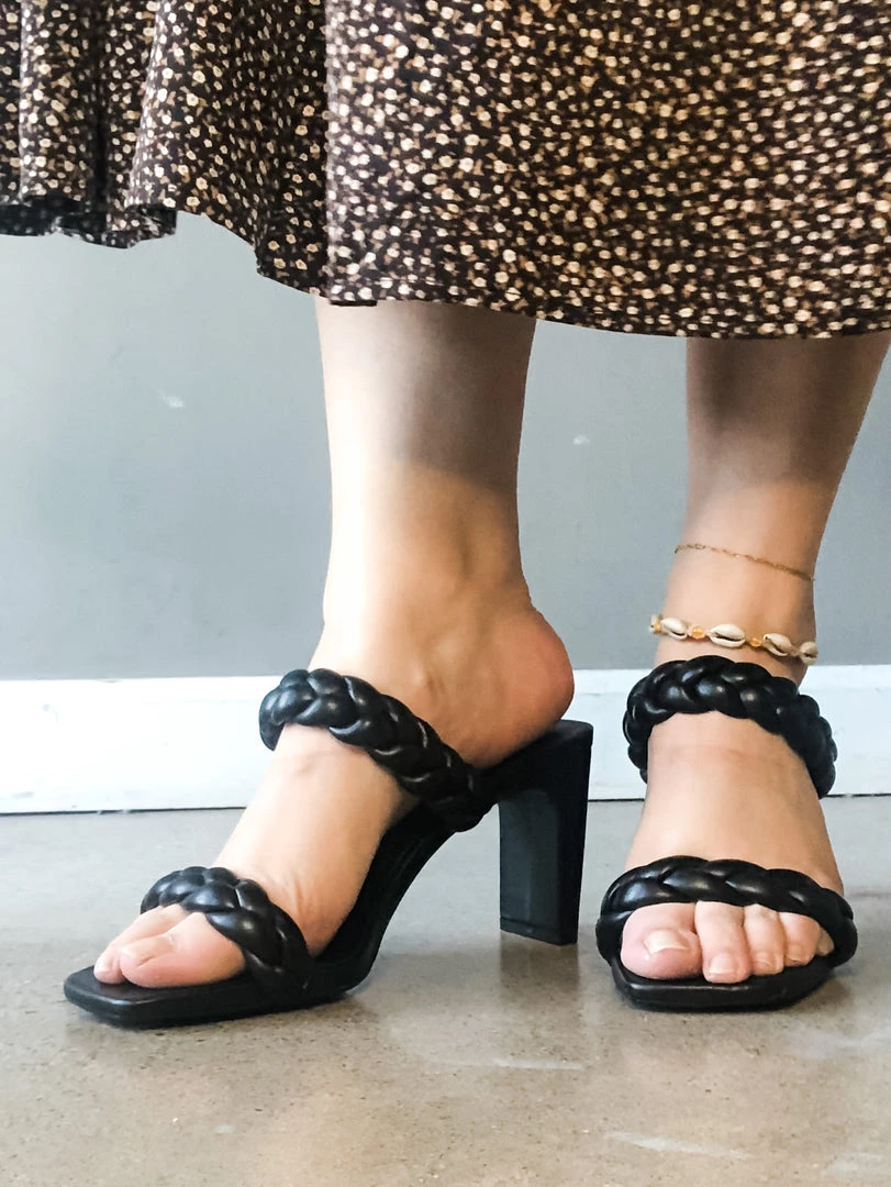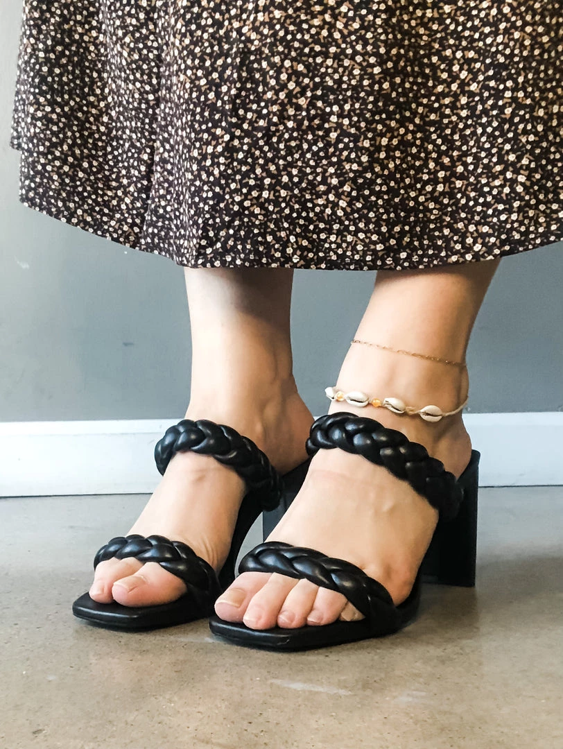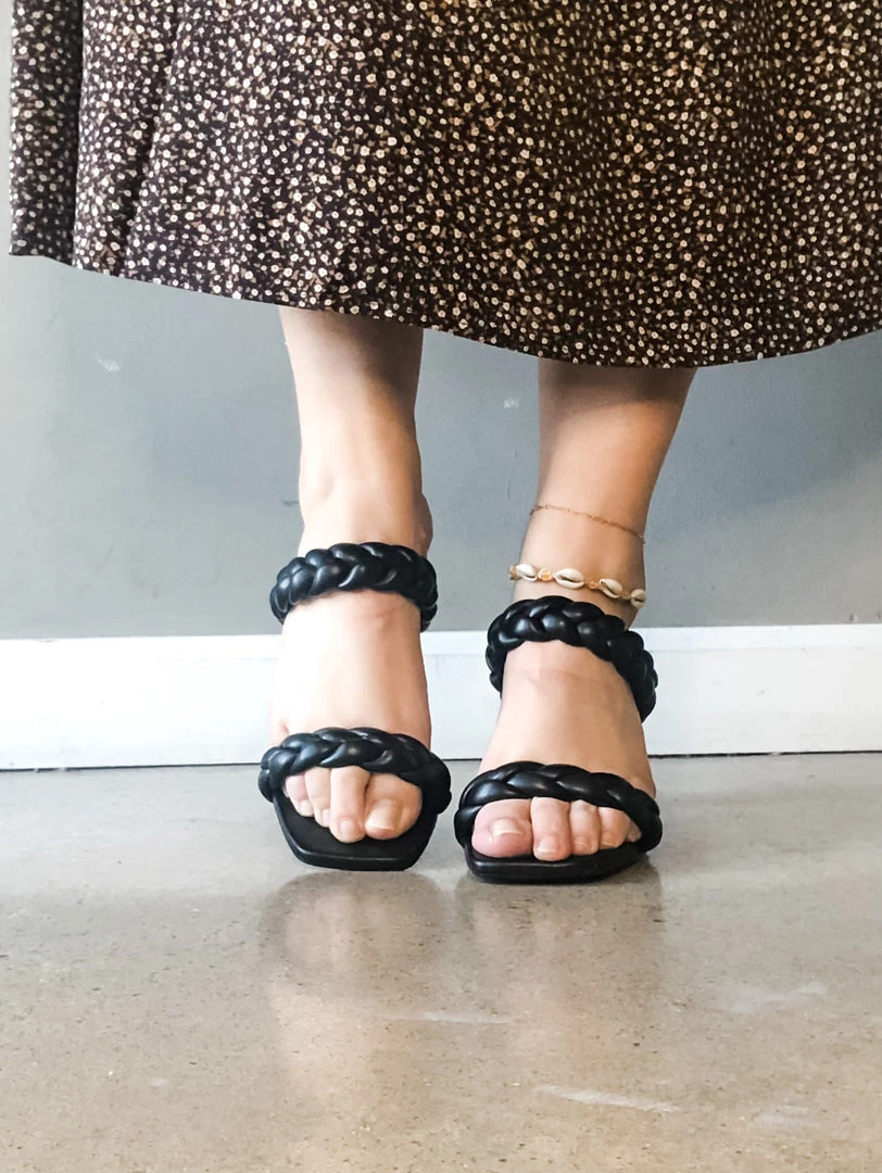 Our best selling Found Braided Heel is back and now in a classic black colorway!! The perfect little summer/fall shoe with a gorgoues little braided top detail and a thin block style heel. We love these chic neutral heels with your fav denim or summertime dresses and rompers! Perfect cozy shoe to dress up any look!!