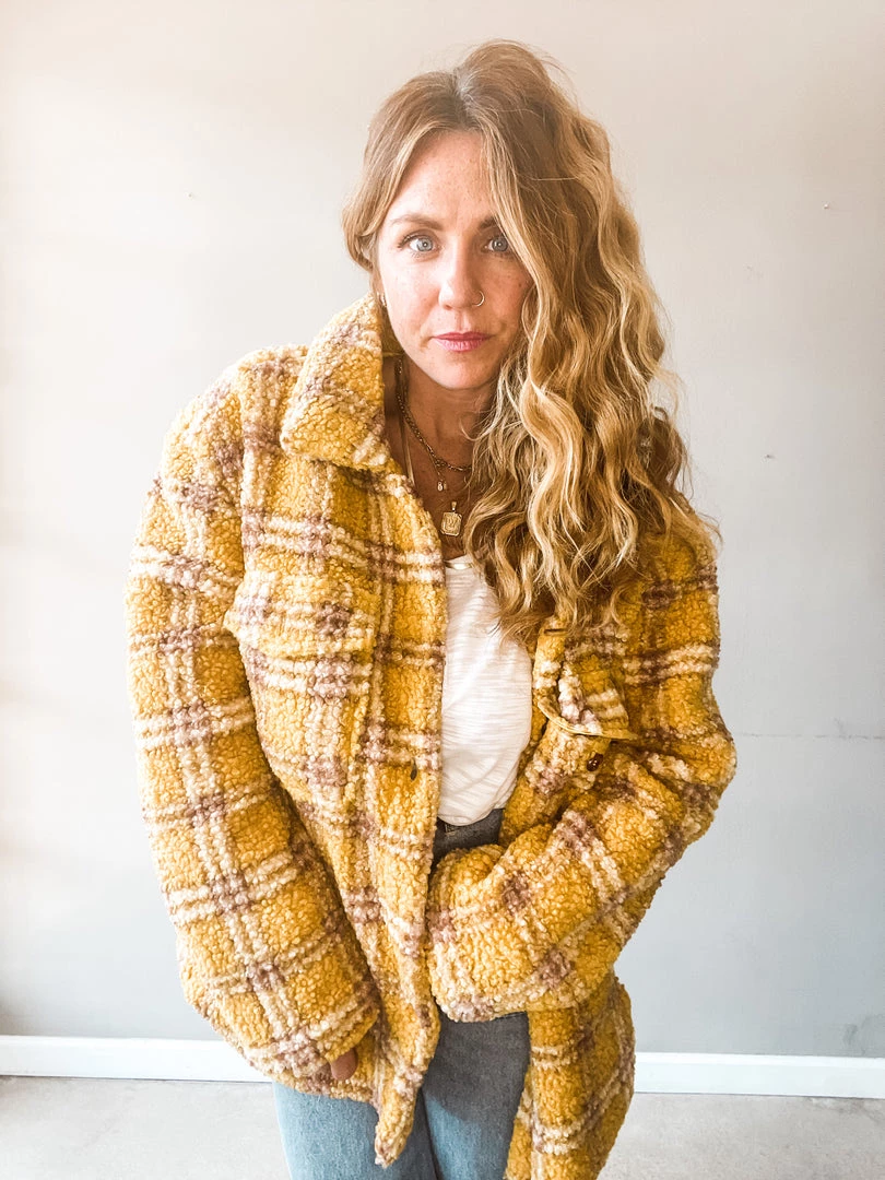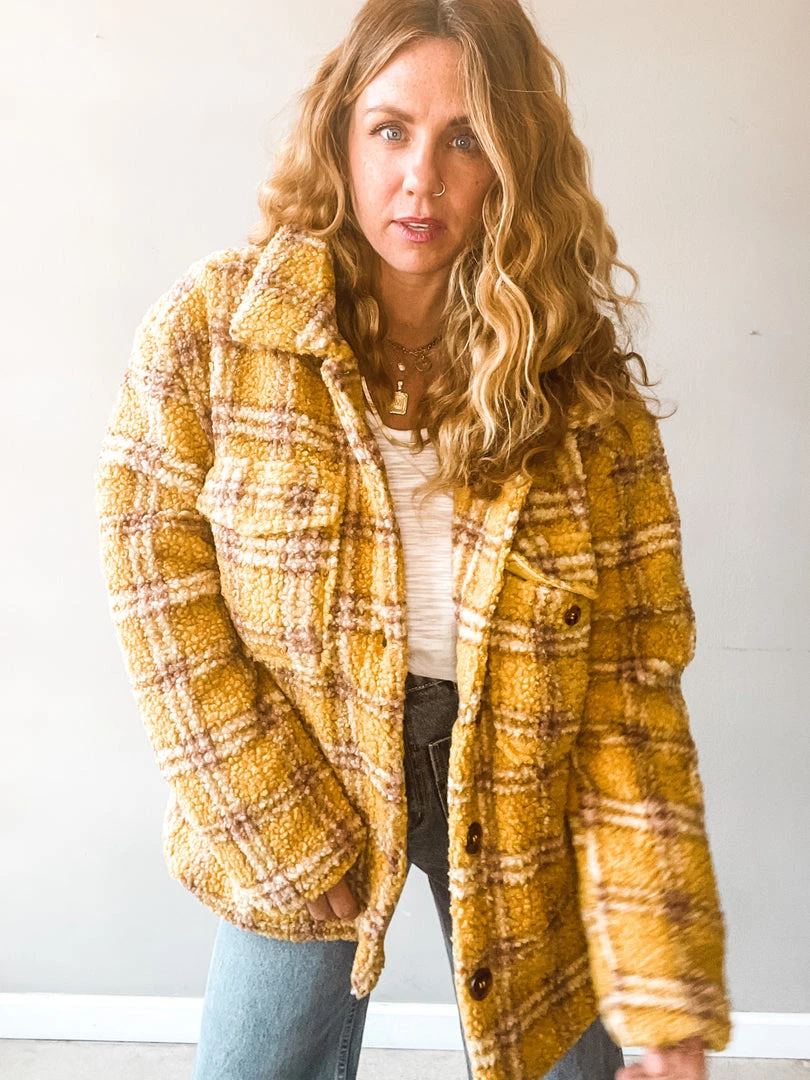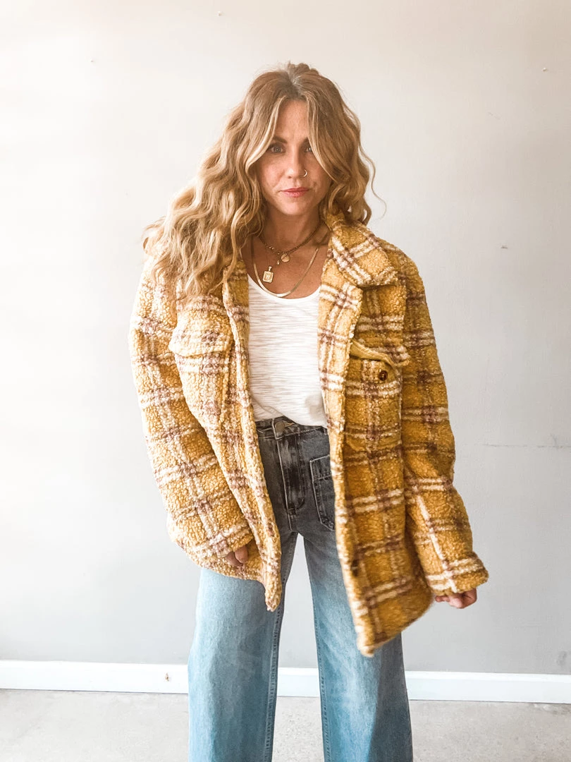 Our new Clueless Jacket is a super fun plaid print, oversized button up jacket that is just as cozy as it is cute. We love this chic chunky piece paired with your fav high wasited denim and a cool tee.