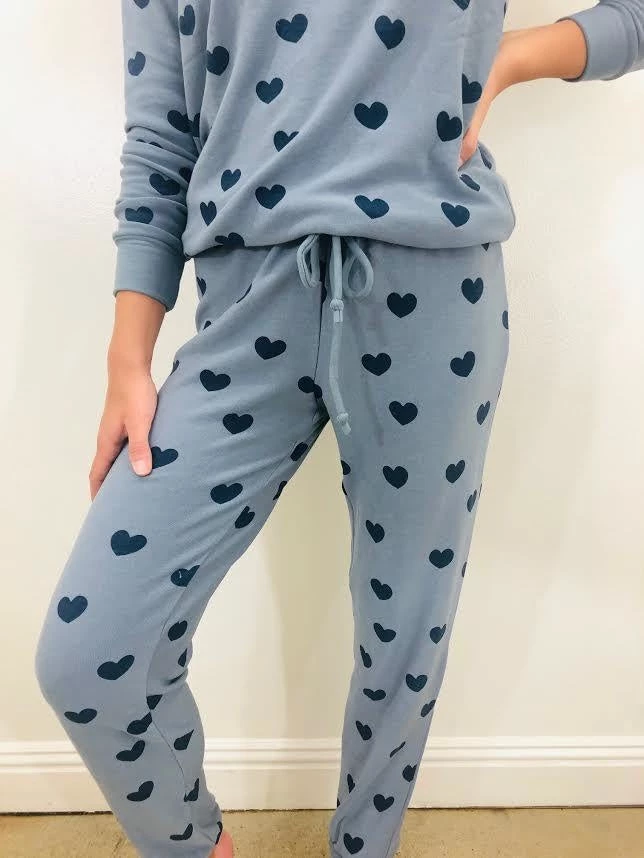 The cozy fabric, pretty print and on-point fit are what make these pants a store favorite! We love the hazy blue vibes of these cozy bottoms. Pair it with the matching Blue Hearts Pullover and pour yourself a glass of vino. (Model wears a small bottom)