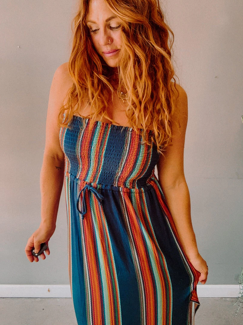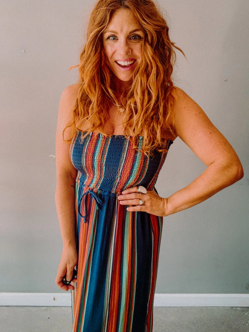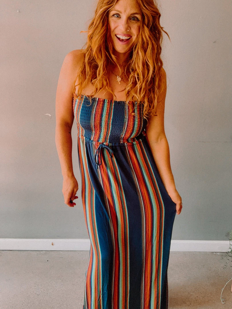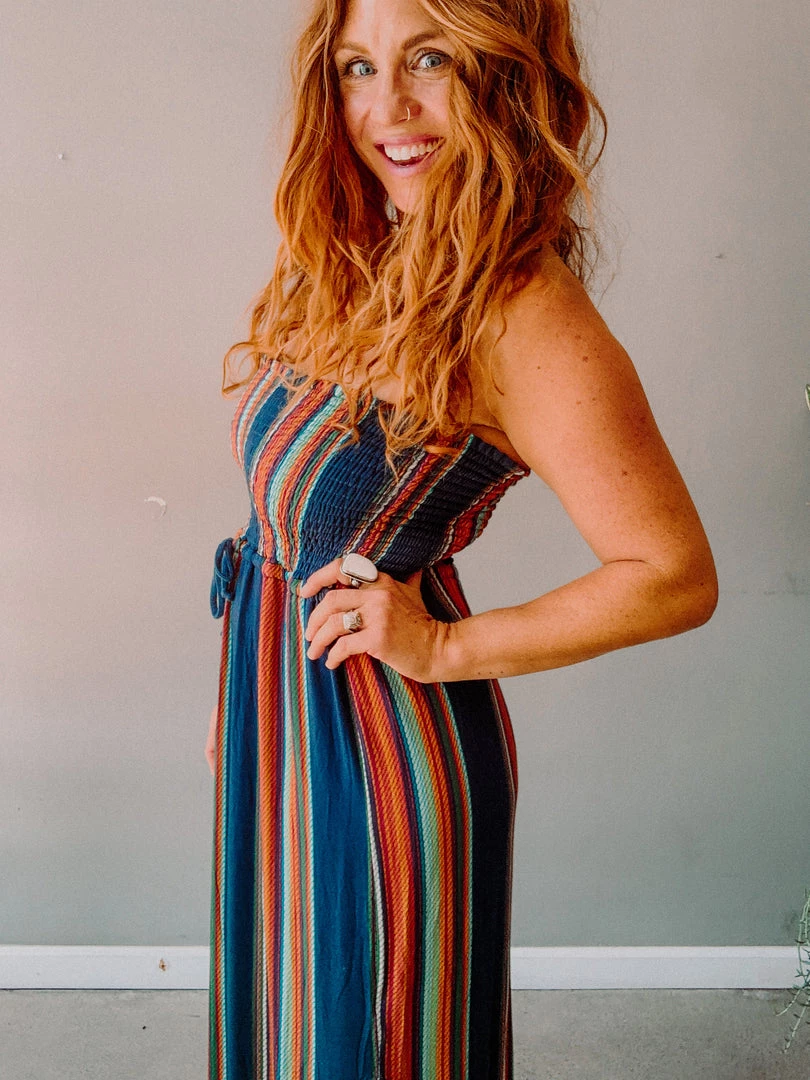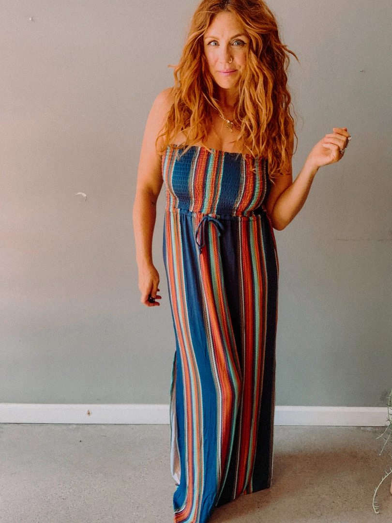 Something about a great maxi dress. This one from Chaser literally checks on the boxes. Its a deliciously cool jersey, super flattering long retro-tones stripes, features two side slits, and a very comfortable smocked top (great for going brag-less and a no-brainer with sizing). The perfect dress to throw on and look like a million bucks. Also great with a leather jacket for Fall!!