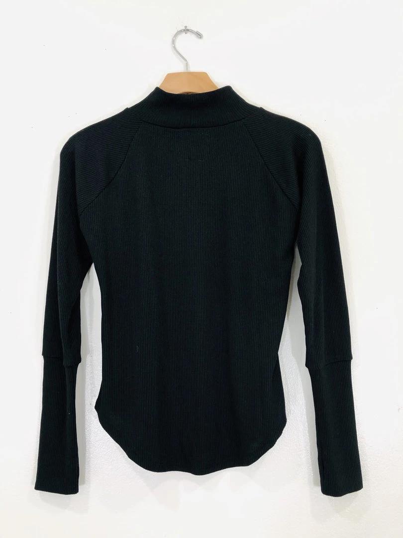 Chaser took the timeless turtleneck and gave it a modern touch by adding edgy built-in thumbholes, a cool curved hem, and using their slinky baby ribbed fabric you know and love.