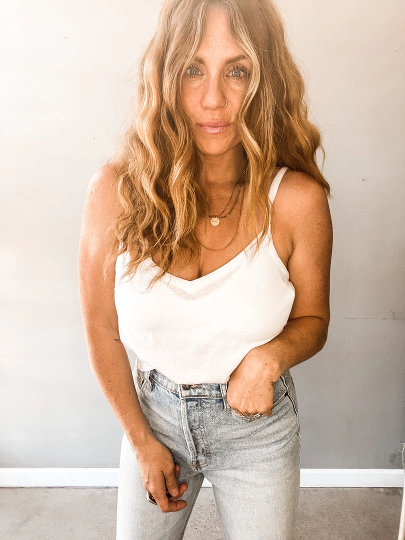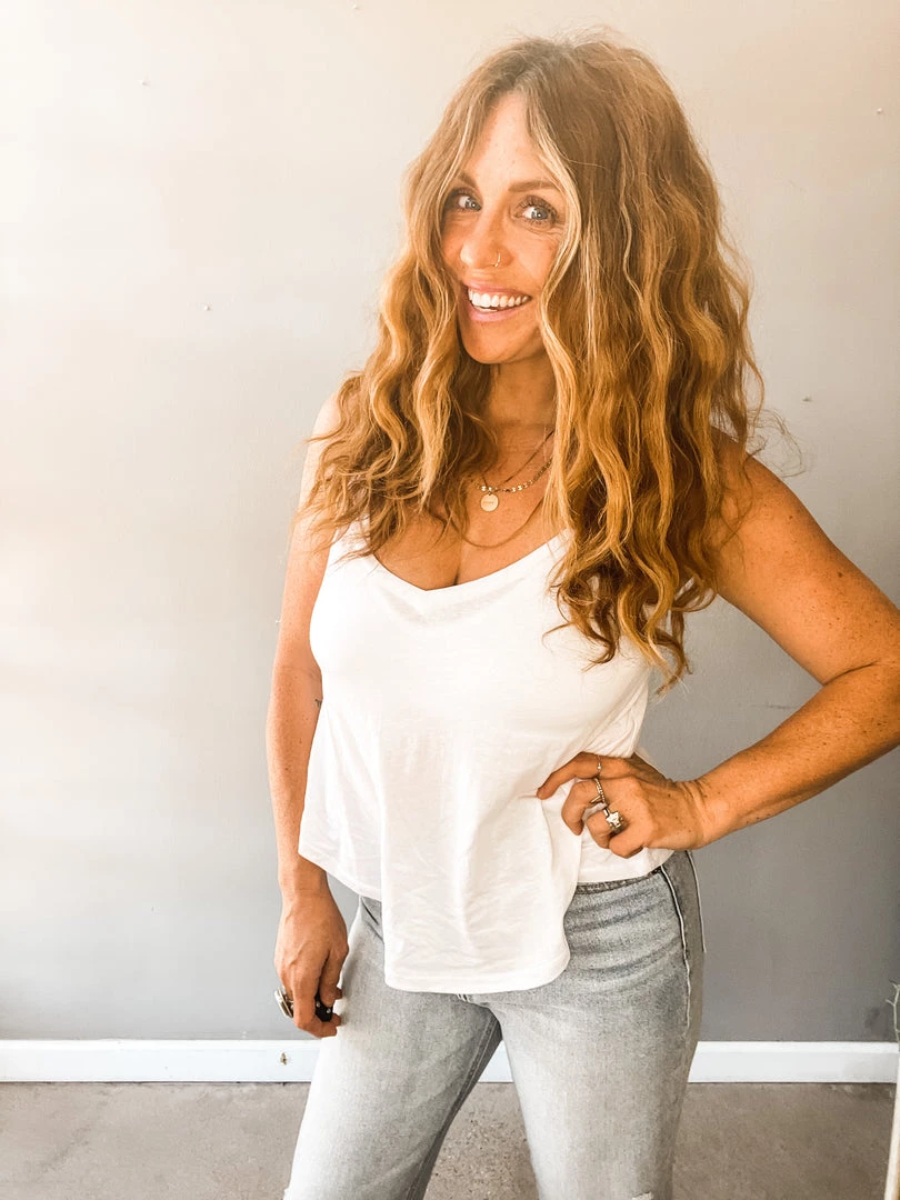 The Chaser Double V Cami is a flouncy, flattering delicious jersey cami with a v neckline and v cut back, adjustable straps, and a cozy, casual fit we love!