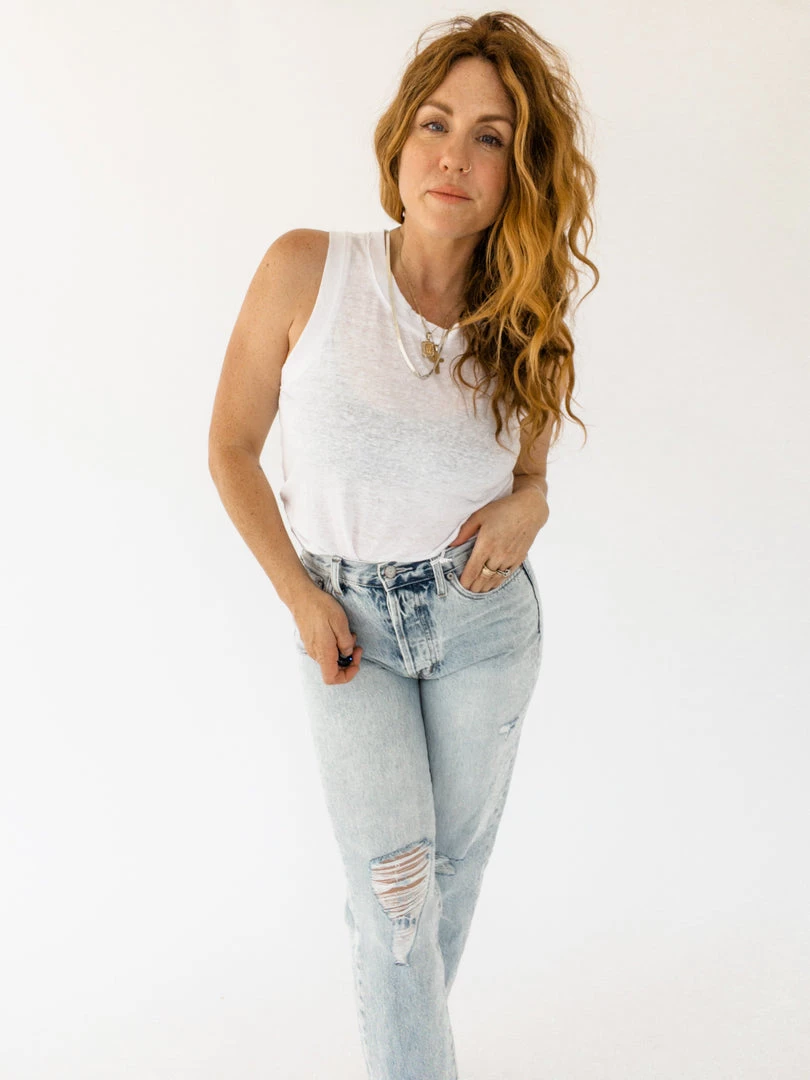 Comfort is always in season, especially during those sweltering summer days and this tank is the best way to combat that killer heat but still look cute AF. The Raw Edge Muscle Tank is a breezy linen jersey top with a lightweight and slightly boxy fit. An easy pair with all your denim for an everyday aesthetic we love!