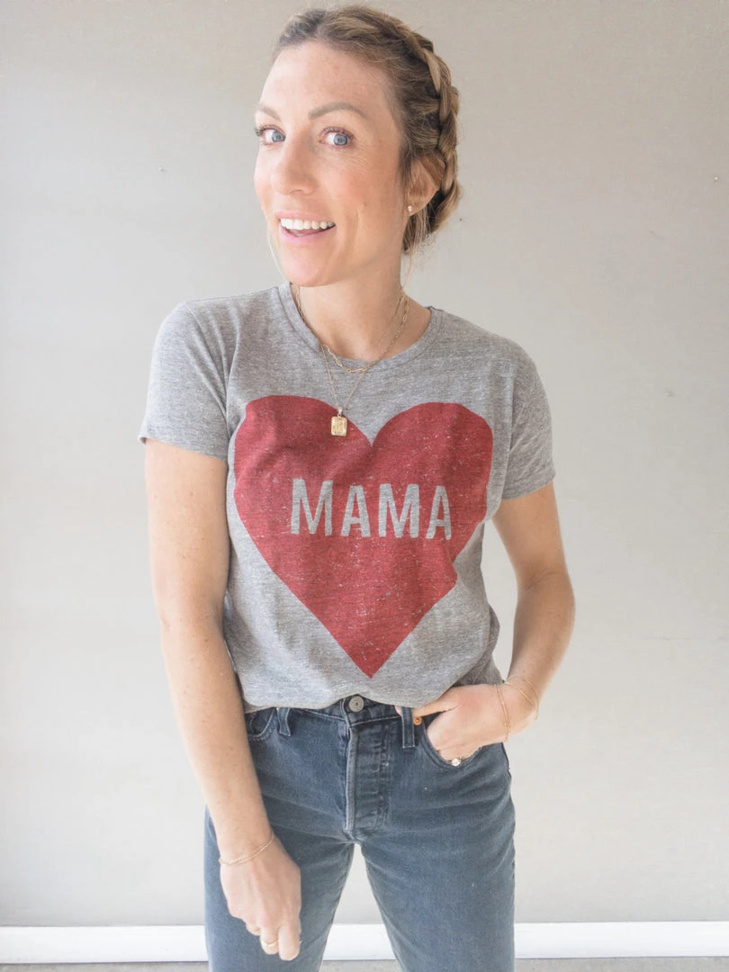 A statement tee is your best accessory! It also makes for the perfect gift for yourself or your favorite mama this Valentine or Galentine’s Day. State your message loud and clear in our Mama Graphic Tee. This triblend jersey crew neck pairs so easily with jeans for an easy, everyday aesthetic. The top’s grey base goes with everything, so prepare for plenty of wear!