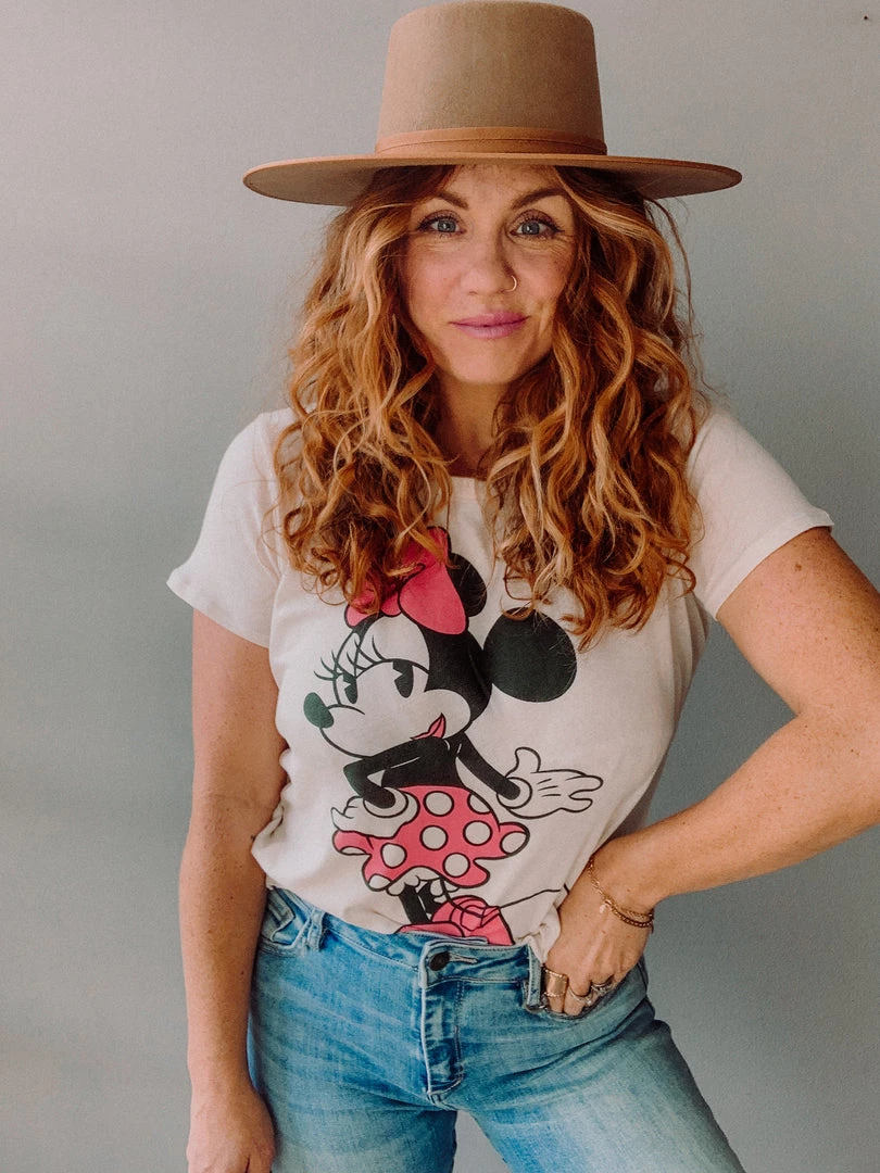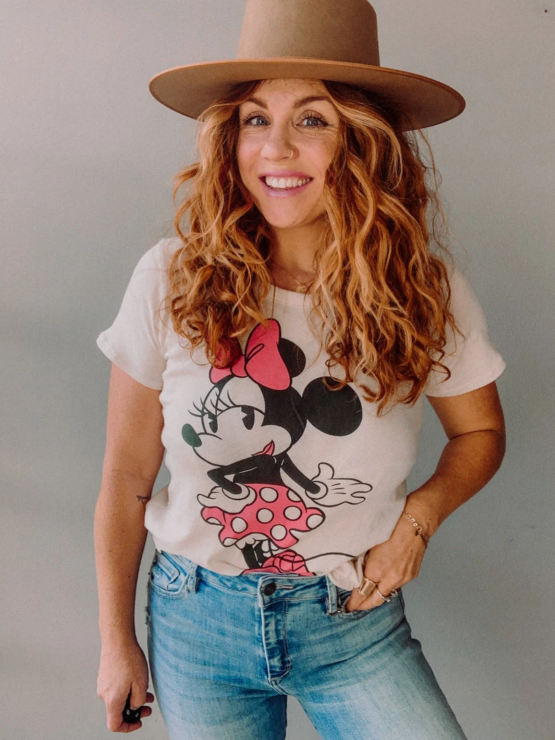 Here’s the thing. If I’m going to Disneyland to chase around my three and one year old, I’m bringing my A Game. This vintage inspired Minnie Mouse tee is the perfect Disney day choice for the mom (sister, aunt or friend) that wants to show Disney some love without spending a zillion dollars on an itchy oversized iron on shirt you’ll never wear again. I also love this under overalls. Soooooo cute. So fun. Your kiddos will definitely approve.