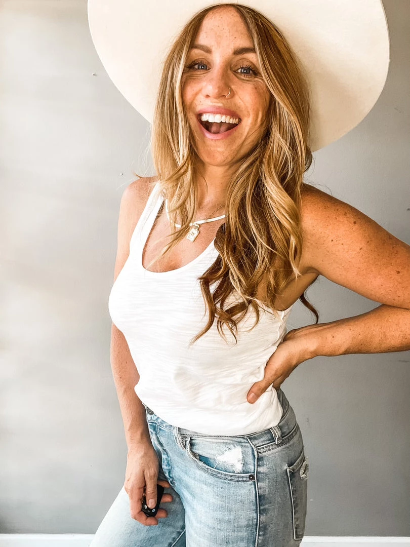 A flirty and flouncy tank, this slub jersey top is perfect for summer. With a deep racer back cut, pair with denim or toss on over a swimmie and bare some skin in one of our all time favorite tanks.