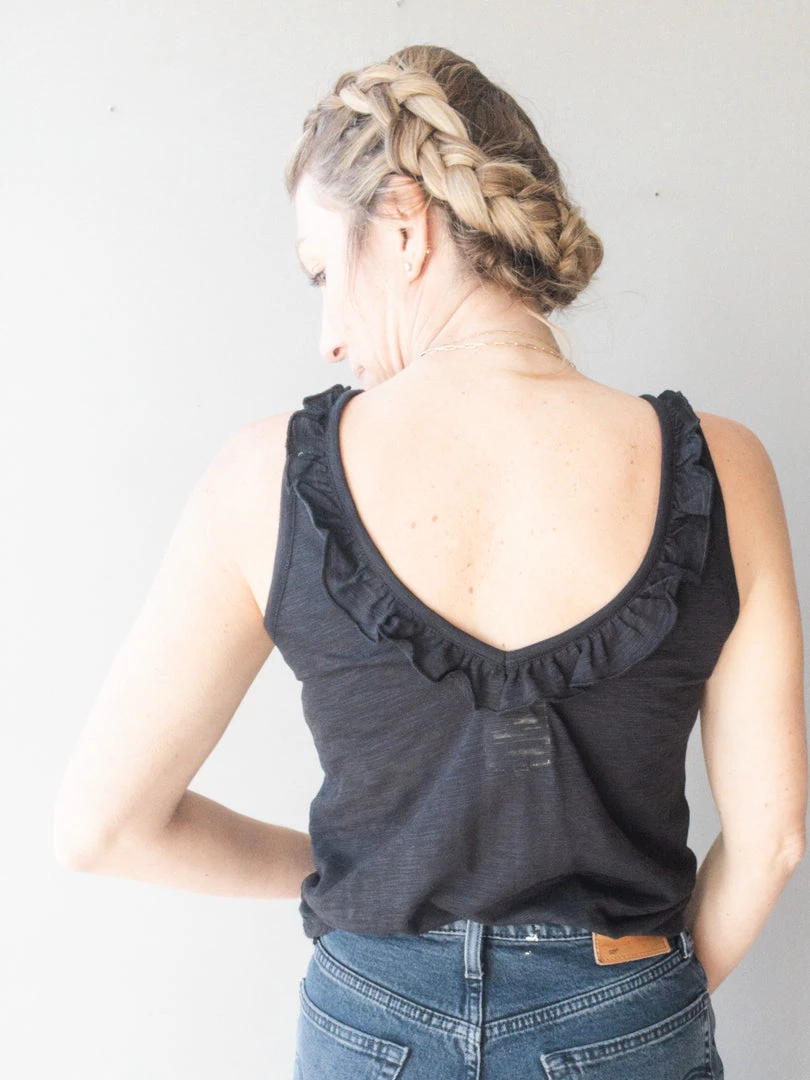 Comfort is always in season and thanks to the Ruffle V Back Tank you can also look cute as can be!! This shirttail tank features a flirty ruffle V back, scoop neck and slub jersey fabric way that we love for repeated wear. For an easy, everyday aesthetic pair this classic tank with some high waisted denim like our Pistola Keaton High Rise and a slip on sandal like our Cabana Slide.