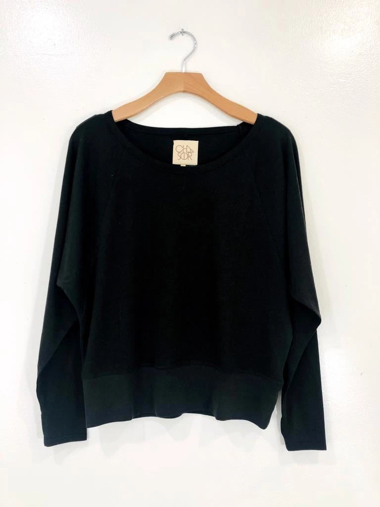 Your favorite lounge layer just got a mjaor style upgrade with this vintage jersey raglan. A slouchy knit with raglan sleeves, a wide crew neck and cool built-in thumbholes. This knit is lightweight and fits slightly cropped.