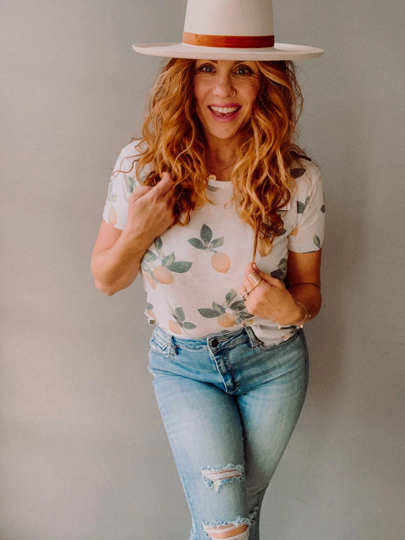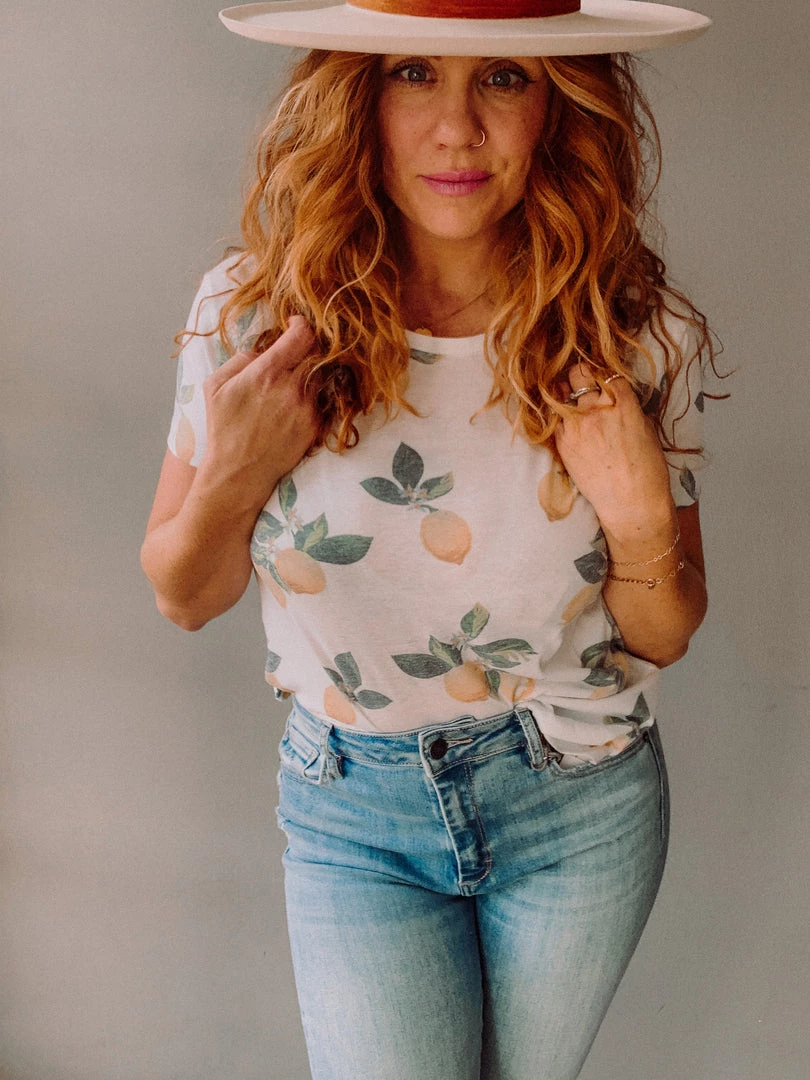 Lemonade makes just about everyone happy. Which is sort of why we couldn’t pass up this fun slightly fitted vintage style graphic tee. LOVE it paired with light distressed denim. Easy piece to throw on or under just about anything!
