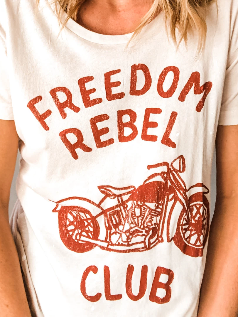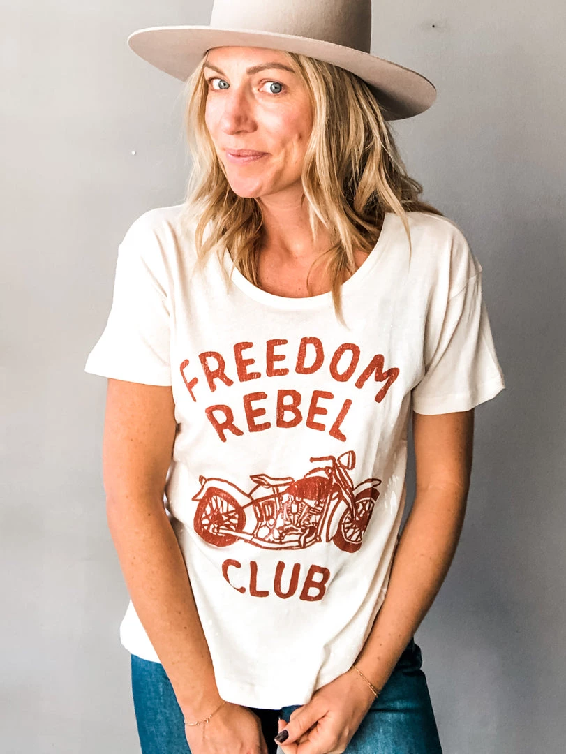 Graphic tees are our jam. Especially ones that tug at the rebel in us. This jersey short sleeve crew neck tee from Chaser is a personal fav. Freedom Rebel Club graphic with paint speckles is such a great everyday tee. Easy to pair and wear.