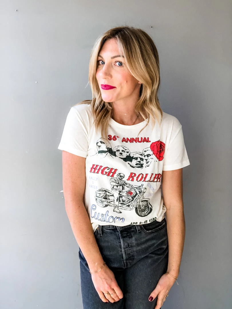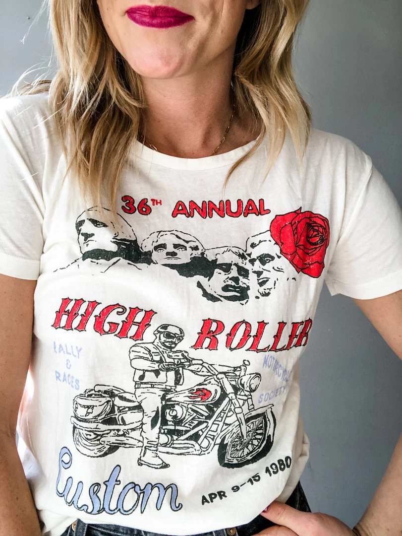 A vintage jersey crew neck tee that has that perfect worn in fit we absolutely love! Whether you’re a biker babe or just a badass, this motorcycle vintage tee has your name all over it.
