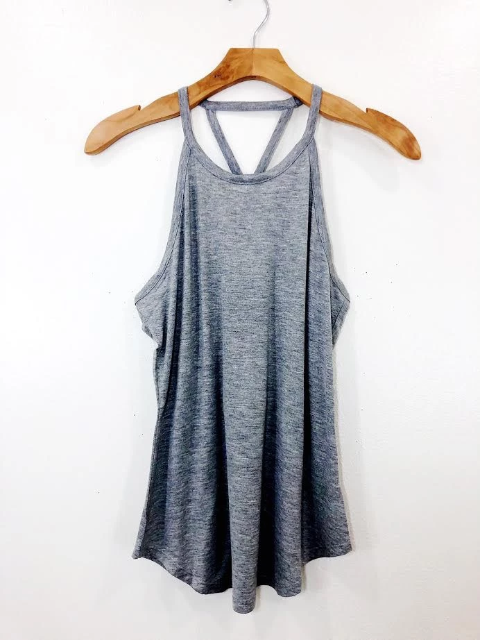 A cool jersey high neck tank with criss cross back in a super soft fabric. A great year round tank you will love. Pair with shorts or under a cardi as the seasons change.
