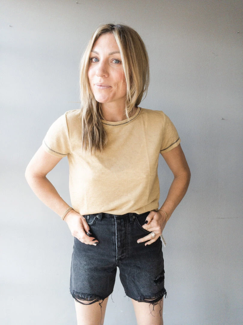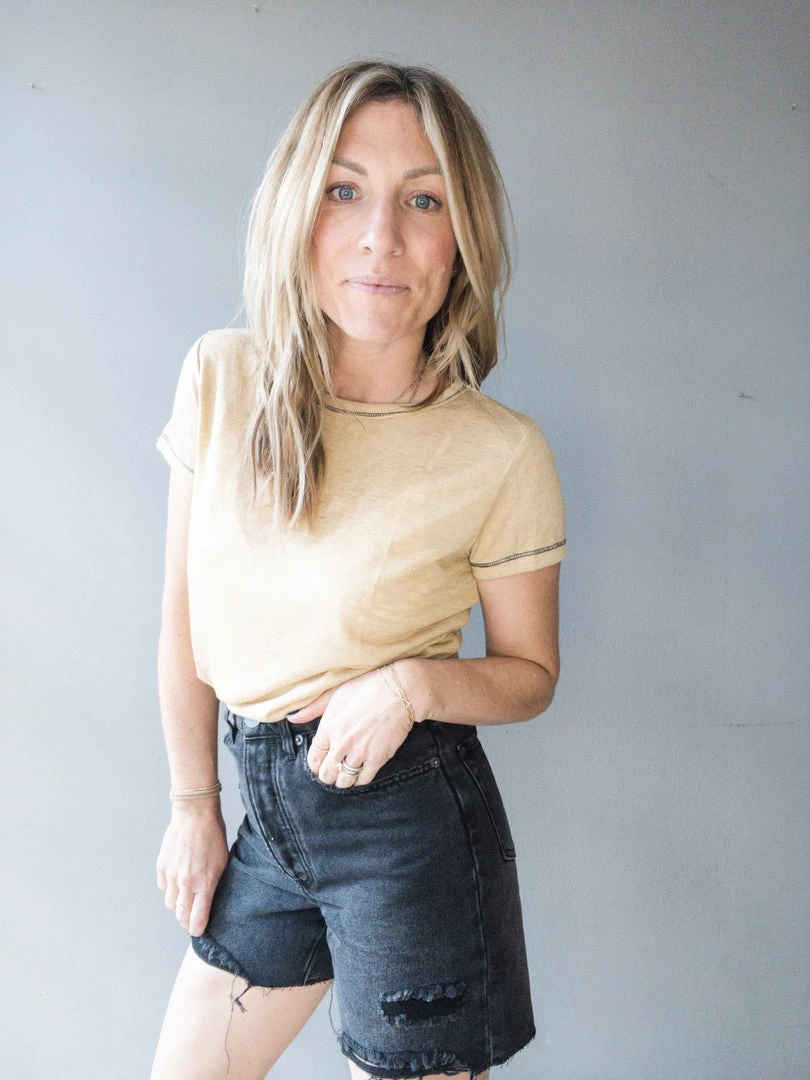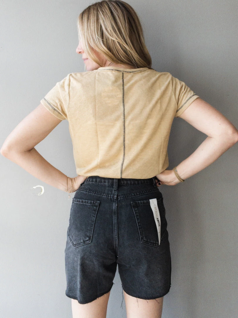 You’ve been asking and we finally delivered…new denim shorts are in the shop and better than ever!! The Bella Short is a high waisted distressed dream! A mid length rigid 5 pocket denim short with button fly and raw edge hem. Fitted in all the right places with a little relaxation in the leg to be your favorite Summer staple.