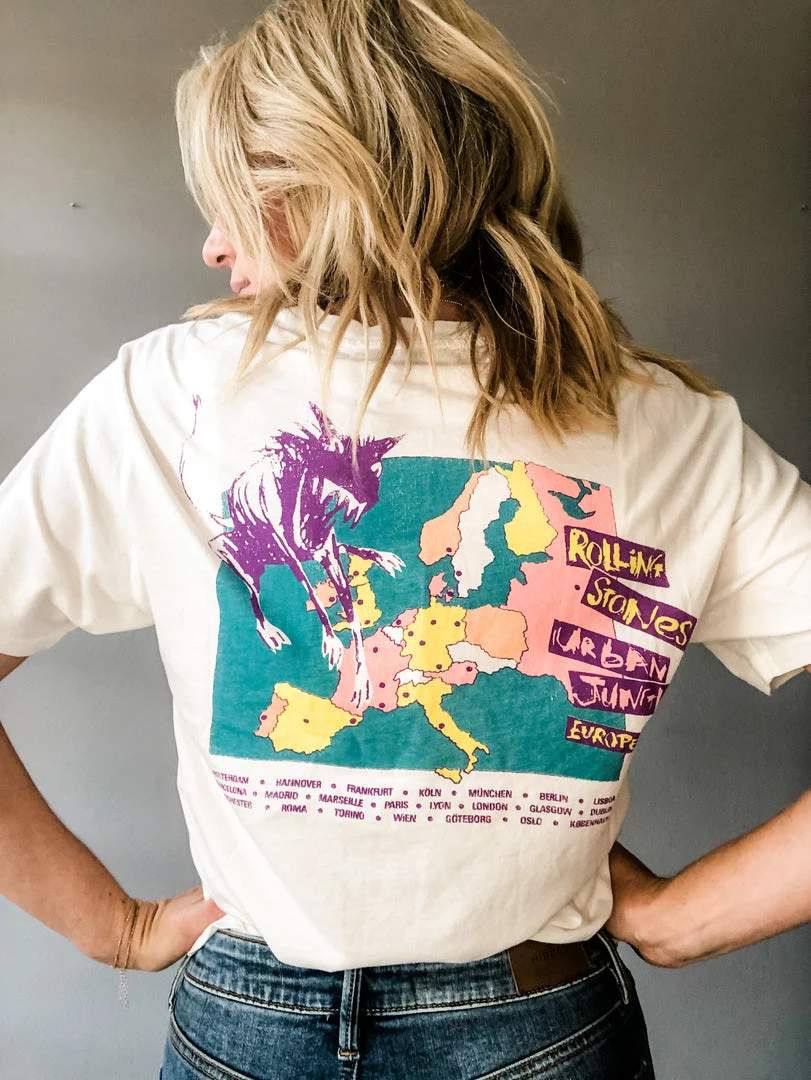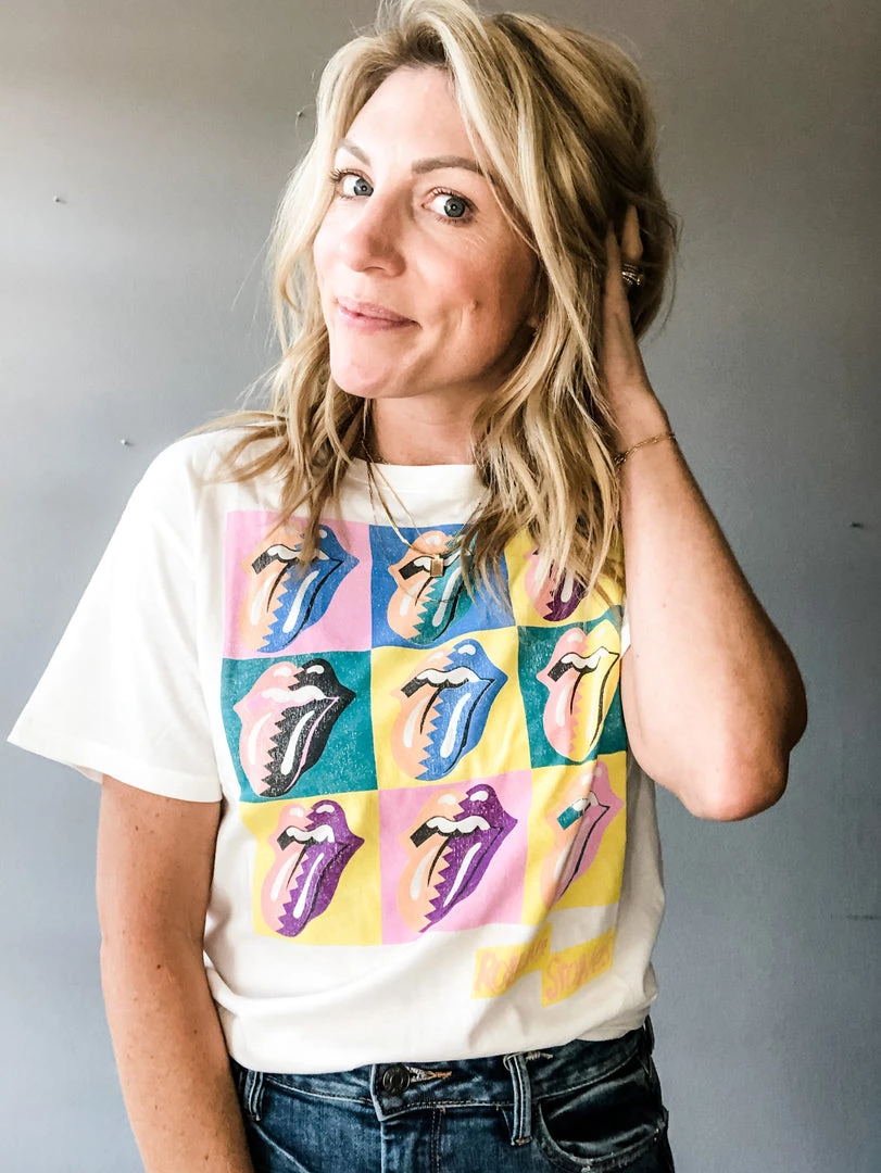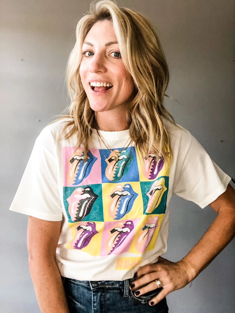 A best selling graphic in our favorite body, the boyfriend tee. An ultra light weight tee that is soft and slouchy, like its been worn for years. Loose fitting and full of color. A classic in a fun pastel pallete that is versatile and a staple in any wardrobe.