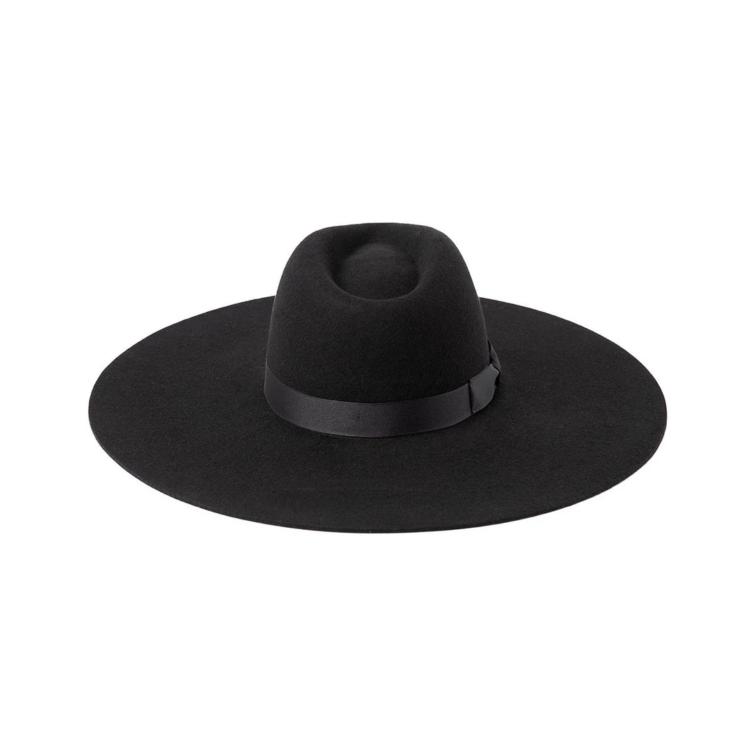 Our Montana is the perfect chic wide-brimmed fedora style. Now with a new refined crown design, for a better fit. Black structured soft wool Montana wide-brimmed fedora. Trimmed with a Black gross grain bow ribbon detail.