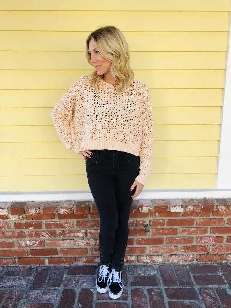 Add a little sugar to your look with the Patrons of Peace Sweetie Sweater. She’s got a 90’s vibe – Cropped, oversized, and cute little buttons are the cherries on top.
